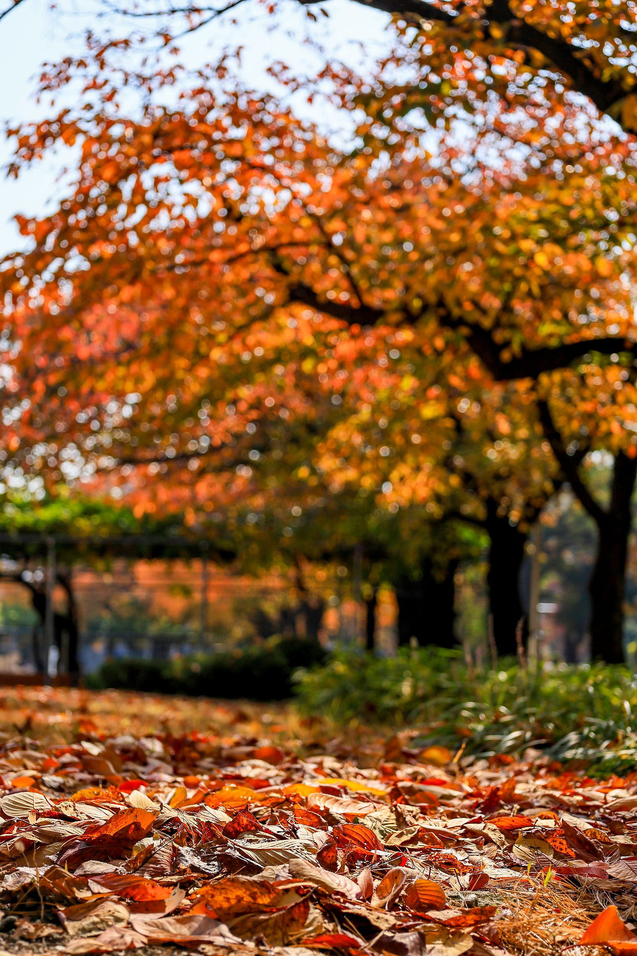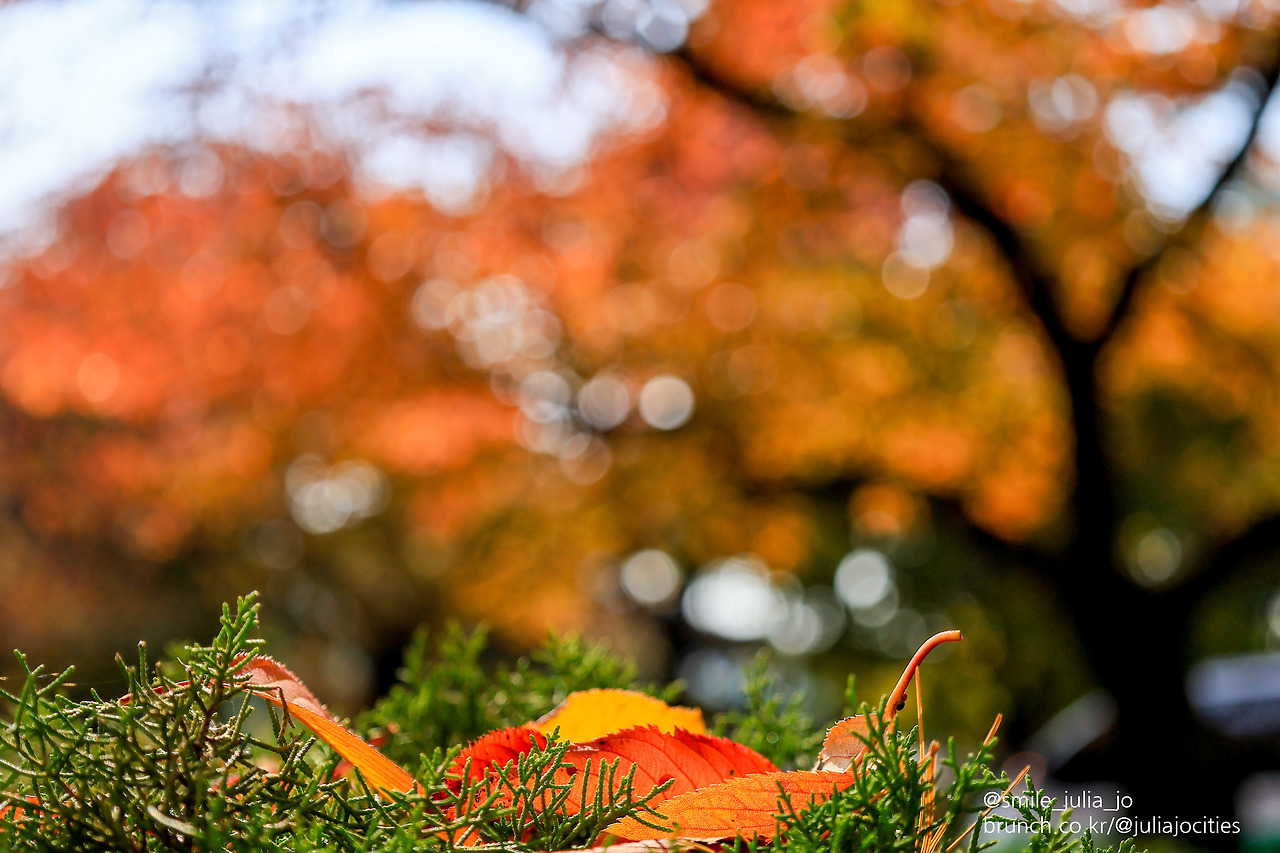 다른 사람들도 벤치에 많이 앉아서 커피도 마시며 얘기도 하고 있는 모습들이었어요. 스마트폰 안 보고 멍 때리는 분도 보였어요. 그곳의 가을색을 감상하는 모습들이었어요. 단풍 색감이 얼마나 멋지고, 이제는 떨어질 거란 걸 알기 때문이지요.