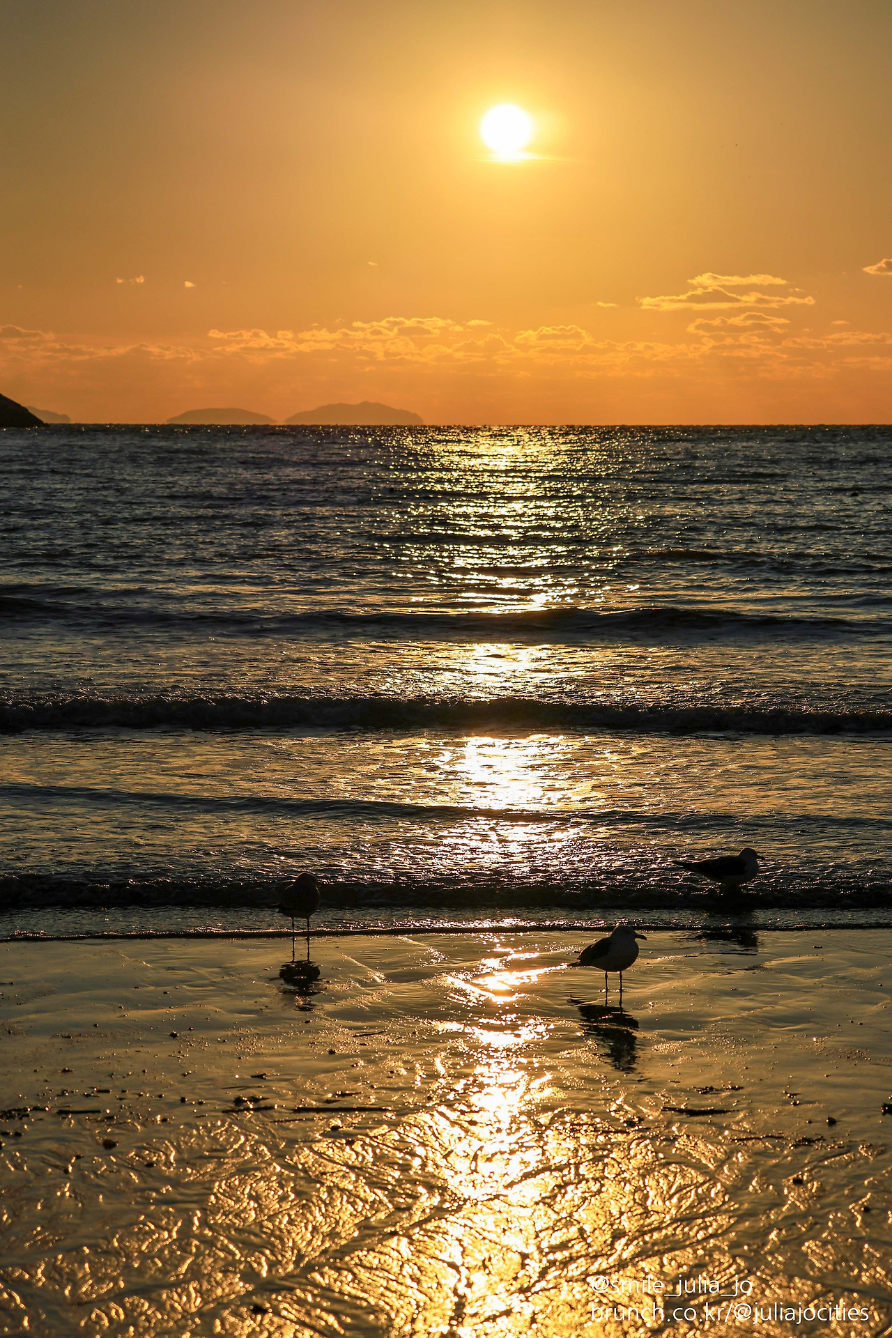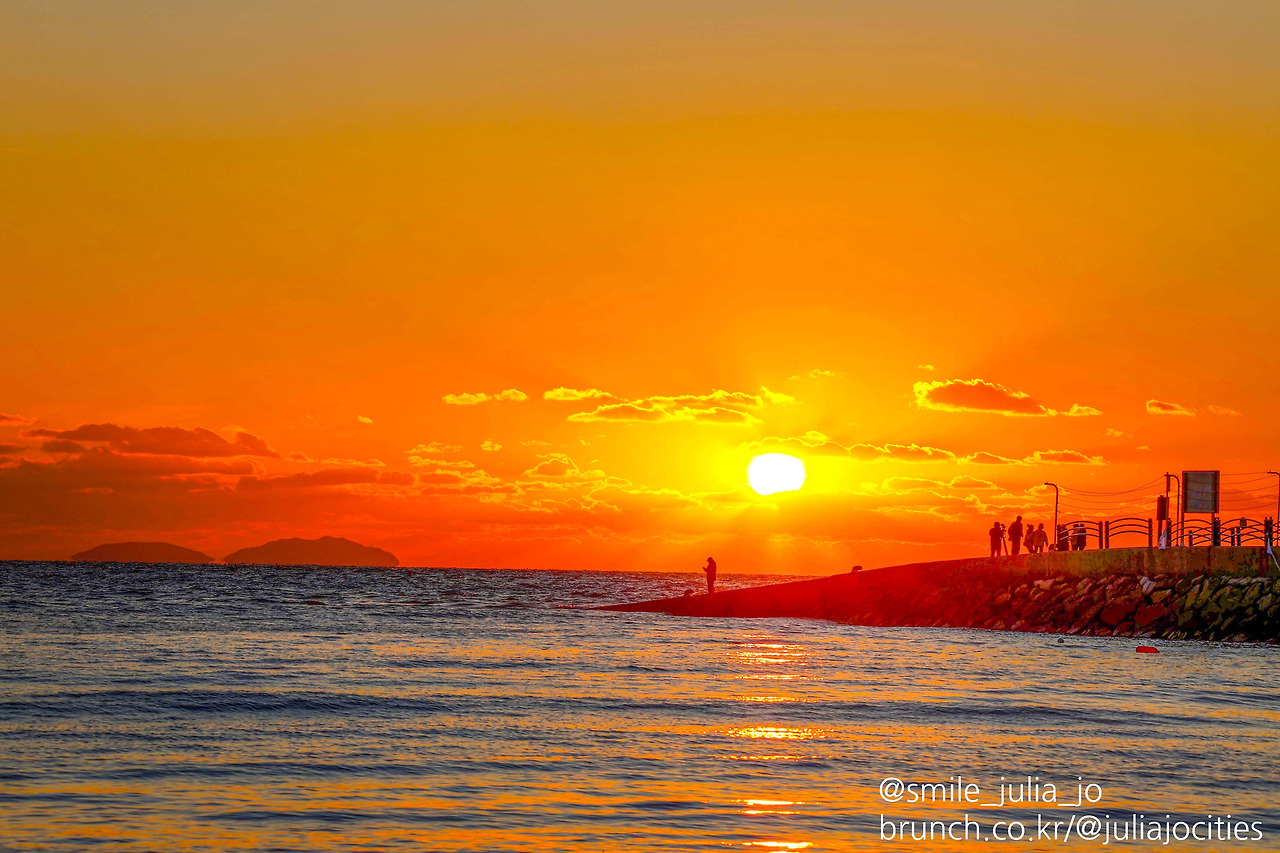 날씨가 구름이 많거나 비 오거나 하면 해변 사진을 찍는 건 조금 무리가 있어서 가기 전에 기상청 예보 날씨부터 확인해야만 해요. 확인하고 출발해도 거의 도착해서는 구름이 잔뜩 내려와서 일몰을 못 보고 사진에 담지도 못한 채 돌아올 때도 있지만요.