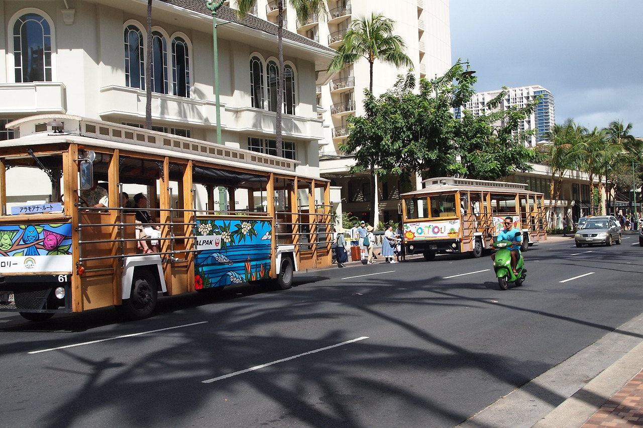 점심 먹으려고 새우 트럭을 찾아갔다. 멀지 않은 곳에 호놀룰루의 유명세가 인터넷에 알려진 로라이모네 Korean BBQ로 푸드트럭 몇 개가 모여있었다. 한 개의 다른 트럭에만 유난히 여행객이 몰려 있었다. 다른 한국사람들도 몇몇이 단체로 주문해서 도시락처럼 가져가는 게 보였다. 드라마에서 처럼 호놀룰루에 오면 새우 트럭에서 먹어봐야지 하면서 맛있게 먹고 잠시 쉬었다. 새우 트럭만이 아니라 파라솔과 테이블도 있어서 여행객을 위한 적절한 공간이었다. 주차했던 공간이 부족해서 다른 차들은 돌아서 나가는 게 보였다.