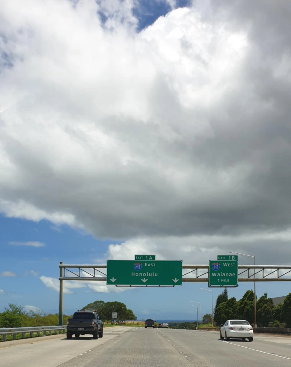 차로 다시 동쪽으로 east free way로 호노룰루 city로 돌아왔다. 이 도로는 표지판이 커다랗게 잘 보였다. 시내 도로는 도로가에 표지판이 아주 작게 되어 있어서 잘 안 보일 정도였다. 스마트폰 google map으로 안내를 보면서 다녔다. 날씨는 잠깐 비가 오기도 했지만 금방 그치고는 다시 화창해졌다. 도로 옆에 나무들이 멋진 폼을 보여주었다.