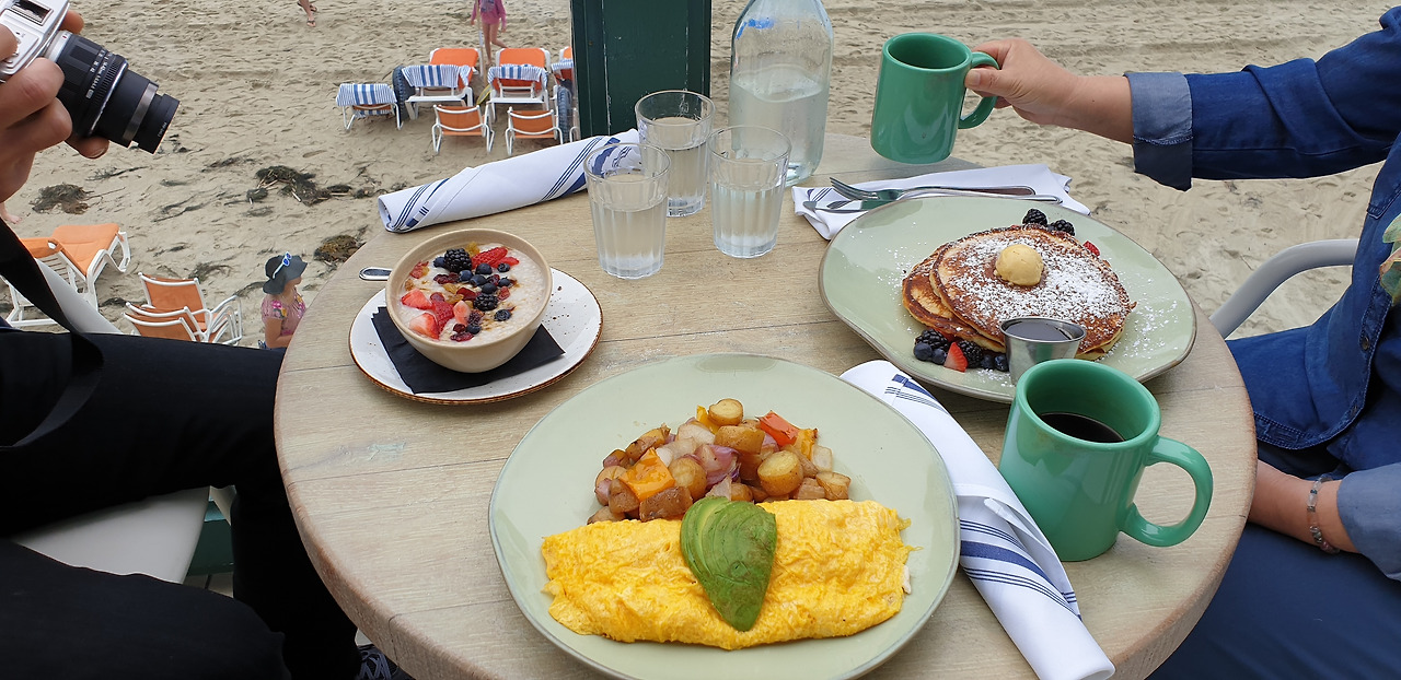 바다내음의 신선한 공기를 느끼며 음식을 주문했다. 잔잔한 흰 거품의 파도를 소리와 함께 보며 맛있게 먹었다. 다른 손님들도 비슷한 느낌으로 음식 먹으며 이야기도 많이 하는 모습이었다. 여러 다른 나라 또는 미국 내의 다른 주에서의 방문도 많은 음식점이며 바로 옆은 여행객을 위한 작은 호텔도 보였다.