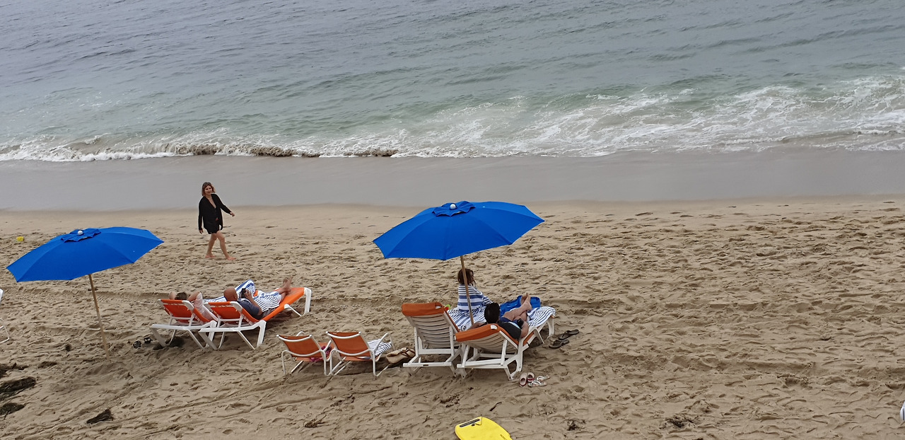그 호텔은 투숙객들에게 이른 아침부터 짙은 파란색의 파라솔과 긴 의자를 제공하고 있었다. 파라솔이 없는 여행객은 커다란 수건을 몇 장 연결해 백사장에 깔아 두고 있는 모습을 보았다. 수영복도 입고서 물놀이를 준비하는 모습이었다. 그리고 또 일광욕도 흠뻑 하려는 여행객들의 보였다.