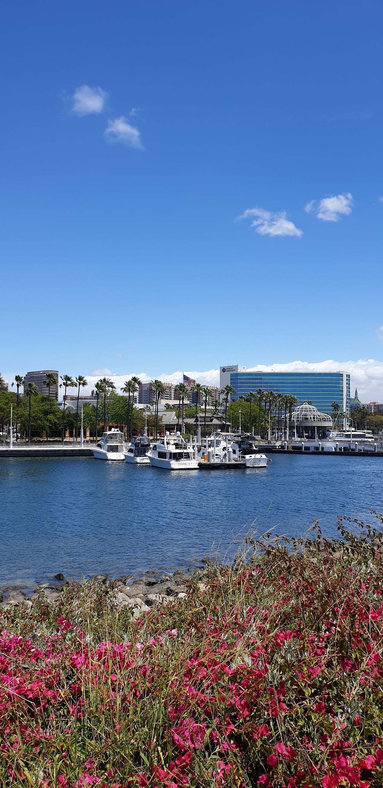 미국 캘리포니아 Cerritos city에서 Long beach city의 Shoreline Aquatic Park에 자동차로 갔다. 이 장소의 매력에 푹 빠졌다. 걸어서 산책도 하기에 적합했다. 또는 어딘가에 앉아서 차 한잔도 마시기에 안성맞춤의 상쾌한 공기였다. 입장료를 따로 받는 아쿠아 시설을 제외하고는 잘 꾸며진 공원이었다. 계단처럼 꾸며진 관람객석으로 되어있는 배에 승선하고 바다로 나가는 사람들도 보였다. 그 장소를 오롯이 느끼면서 산책을 하며 잔잔한 바다도 감상할 수 있다. 잔디 위에 털썩 앉았을 때 따사로운 5월의 햇살이 내리쬐었다.