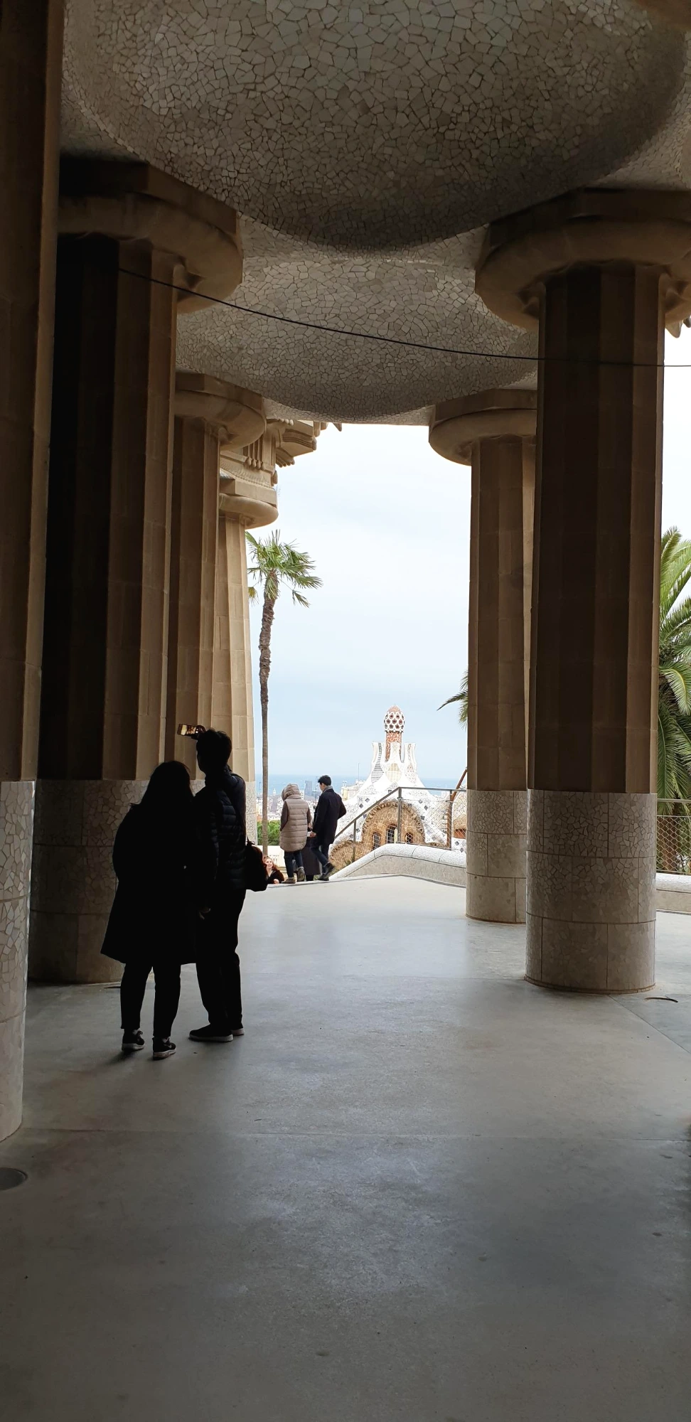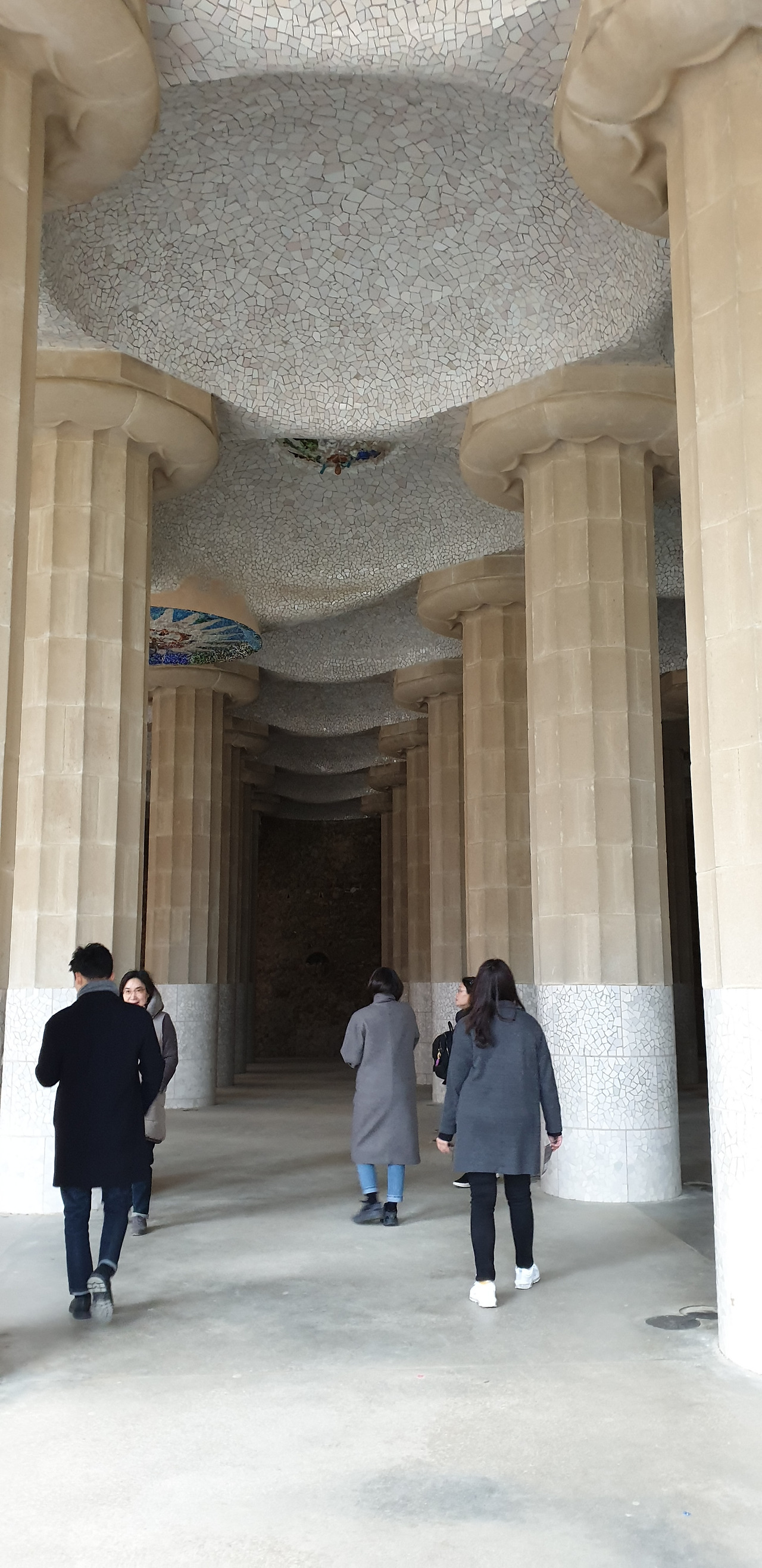 구엘 공원 안에 루프탑을 받치고 있는 기둥의 아래쪽 회색부분 높이가 같아 보이지만 직접 옆에 가서 서보면 신기하게도 모두 다른 높이