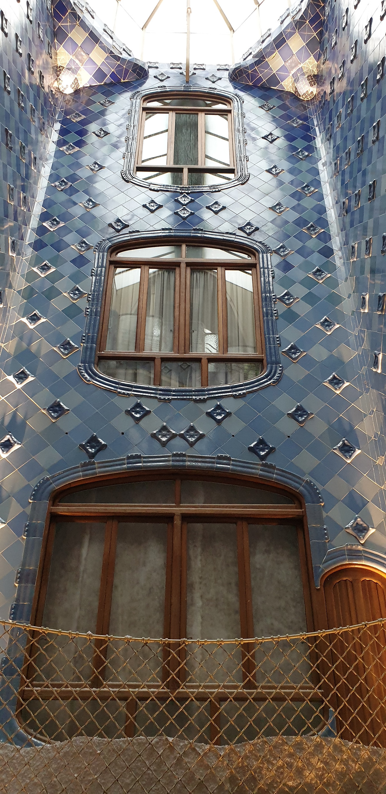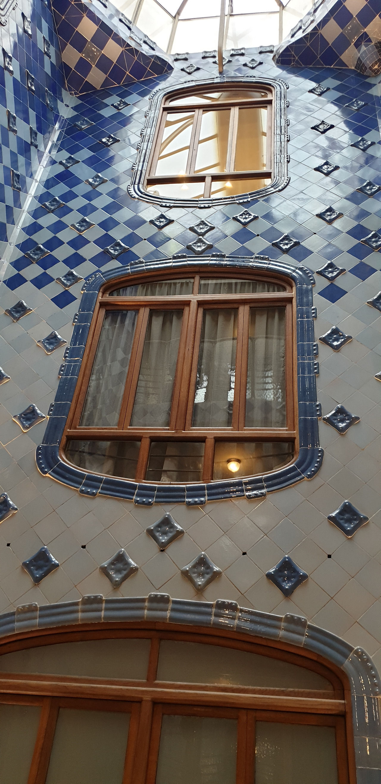 카사바트요 건물 안쪽에 벽들도 바다를 닮아보였다. 건물 가운데 쪽으로도 햇빛이 들어 올수 있는 천장창으로 만들어졌다.