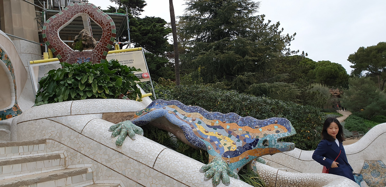 이날은 일요일이었다. 그러고 나서 화요일에 우연히 투어팀 중 한 사람을 만났는데 그 사람이 구엘공원이 우리 팀의 투어 이후 다음날 월요일부터 폐쇄되었다고 했다. 이유는 나무가 부러질 정도의 강한 바람 때문이었다. 며칠 후 돌아오던 목요일 오후쯤 다시 개장했다고 나중에 들었다. 한 바터라면 못 볼뻔한 구엘공원이었다. 꾸엘 공원이라는 발음도 들었다. 그리고 또 따뜻한 날씨에 여행 중에 또 보고 싶은 곳이었다. 왜냐하면 독특한 건축양식이 느껴지는 그곳에서 조금 더 시간을 보내고 싶었기 때문이었다.