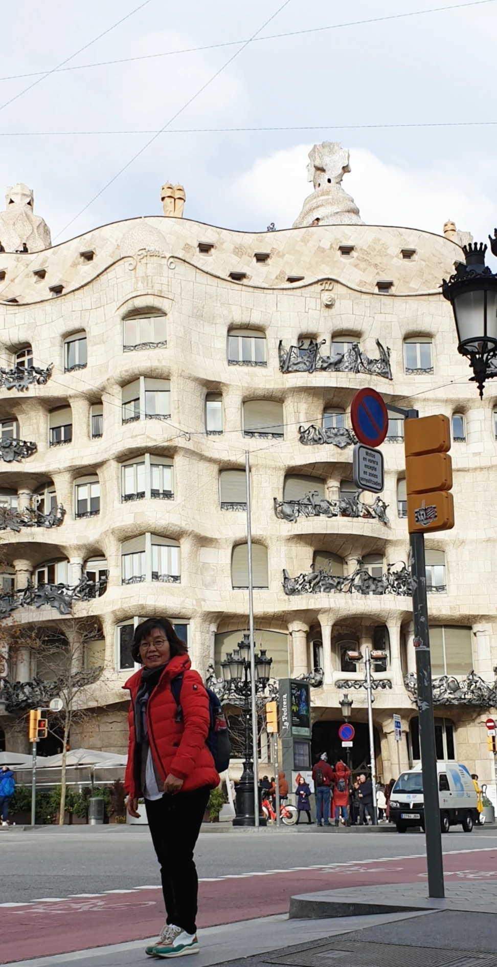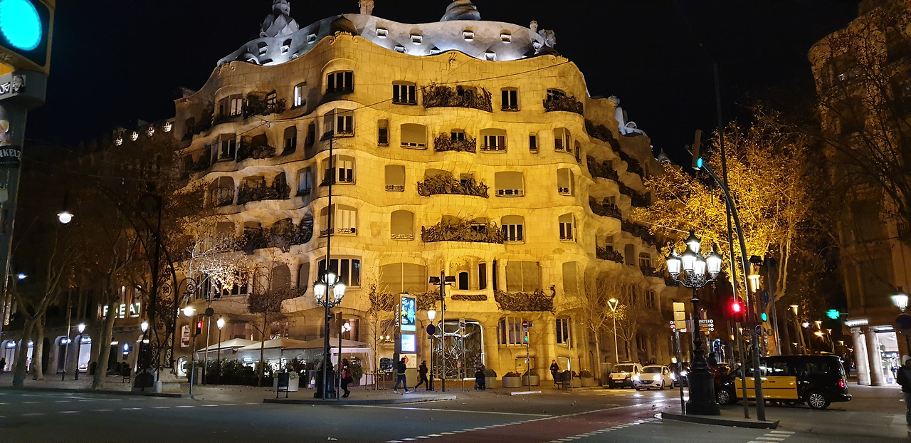 다시 또 택시로 이동해 갔던 곳은 카사 밀라였다. 아주 심한 바람 부는 저녁에 그 앞에서 투어 가이드의 설명은 또 이어졌다. 근처의 건물들과 비교가 될 정도의 특색이 보이는 건물 카사 밀라는 누구든지 매력을 느낄 것 같았다. 스페인 언어 스패니시로 CASA는 집이라는 의미라고 했다. 밀라는 이름이었다. 밀라의 집이라는 의미였다.스페인의 천재 건축가 안토니오 가우디가 건축한 카사 밀라는 1906년에 설계를 시작해 1912년에 완공된 고급주택 연립이었다. 바르셀로나 중심가인 그라시아 거리에 위치하고 있고 지하철역도 바로 가까이 있다. 카사 밀라는 '산'을 주제로 한 건축물이었다. 몬세라트 수도원의 뒤에서 볼 수 있는 신비스러운 바위 산에서 건축의 영감을 얻었다고 했다. 카사 밀라 이 건축물은 1984년 유네스코 세계문화유산으로 지정되었다.