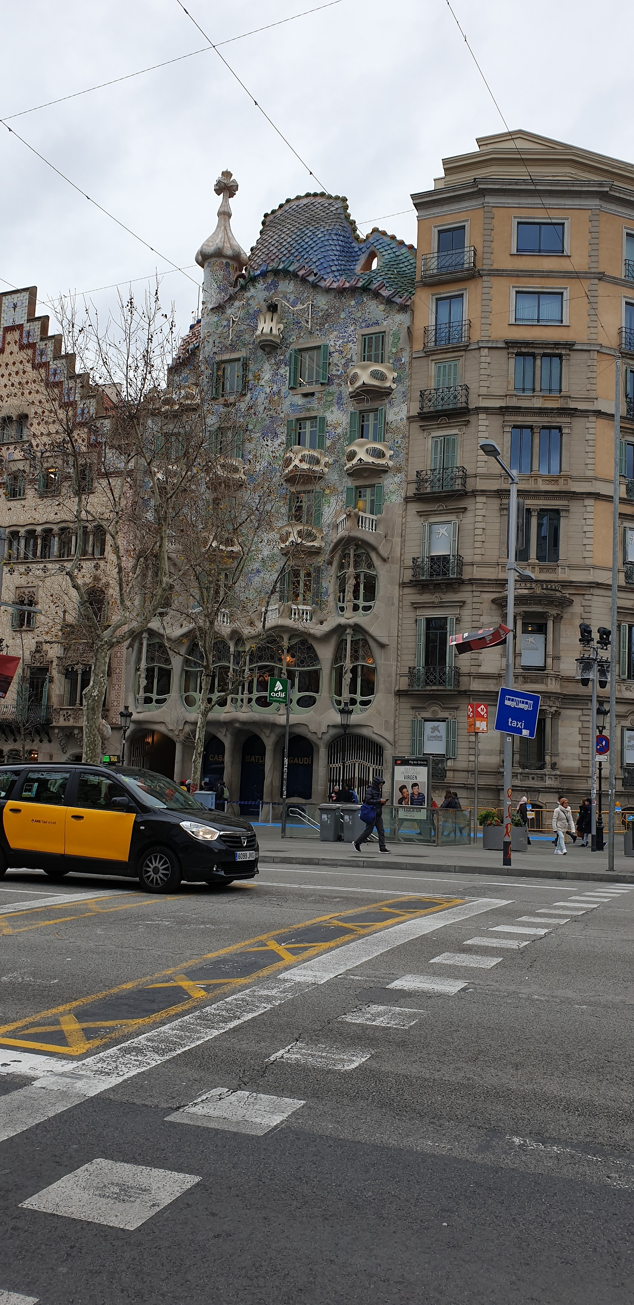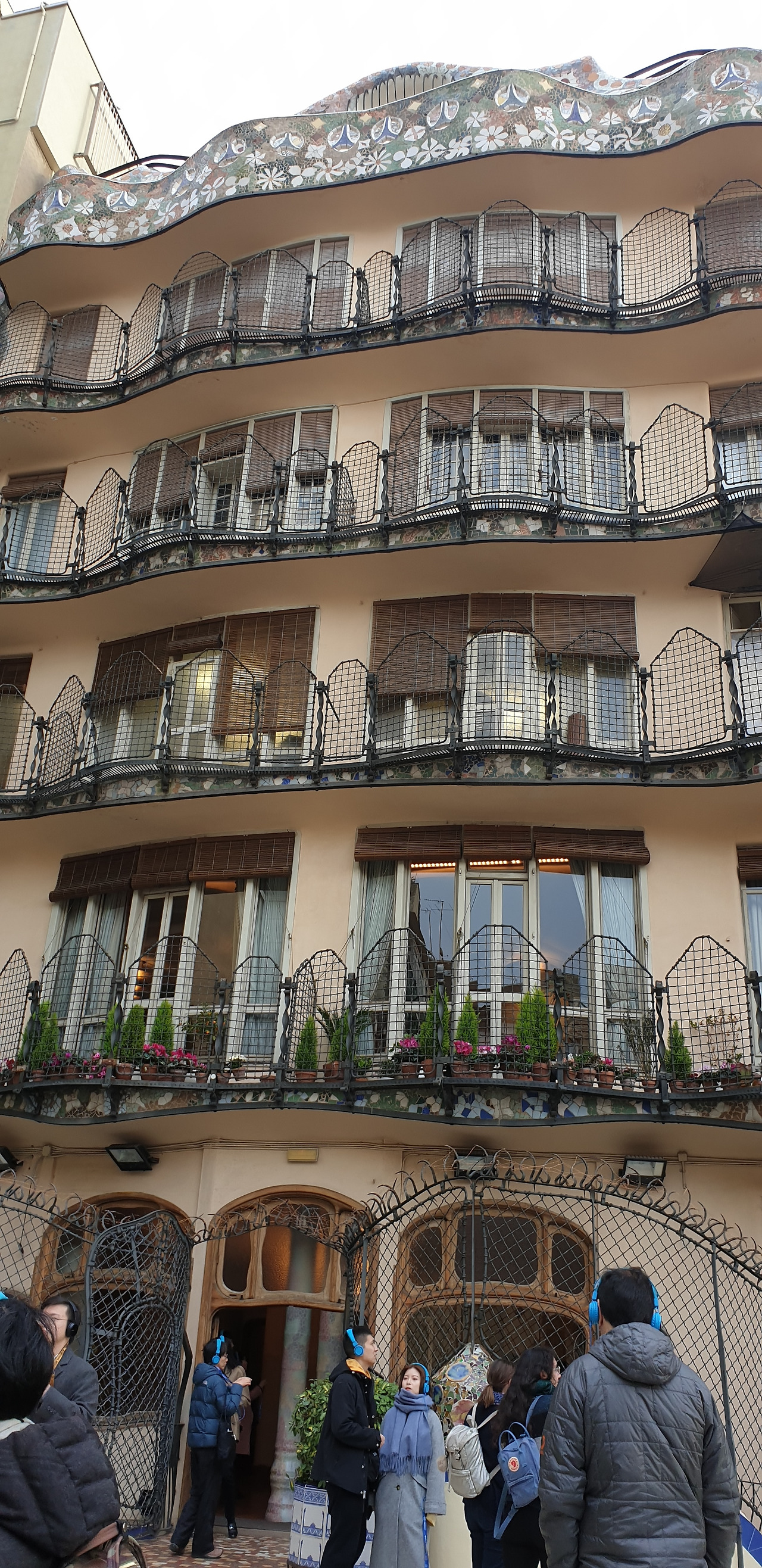 다음날은 월요일이었다. 아침 일찍 모두 잠이 깨어서 토스트, 계란, 베이컨에 커피까지 만들어서 먹었다. 주방이 있는 아파트로 숙소를 옮기고 나서 누리는 특권이었다. 가우디의 건축물 카사 바트 요의 건물을 발코니에서 볼 수 있었다. 그리고 그 건물 안 쪽의 모습을 보러 출발했다. 숙소에서 걸어서 약 5분 거리에 있었다. 아직도 시차에 시달렸지만 며칠 만에 이 도시 바르셀로나가 마음에 와 닿았다. 그런데 날씨는 이상기온으로 바람과 함께 쌀쌀했다. 오전 9시 30분 시간으로 티켓을 구입했던 것은 붐비지 않을 거라 생각했었다. 그런데 그 시간에도 많은 여행객들과 함께였다. 시간대별로 다른 입장료를 산 앱을 보여주고 설명이 나오는 기계를 받고서 카사 바트요 내부로 들어갔다.