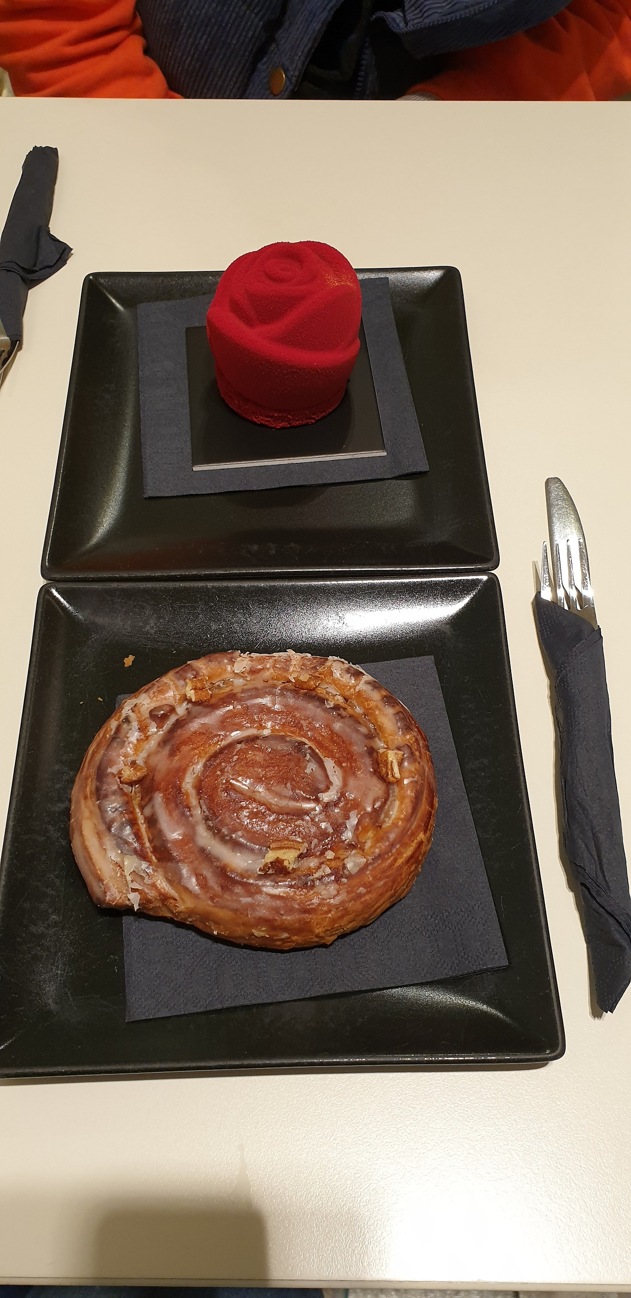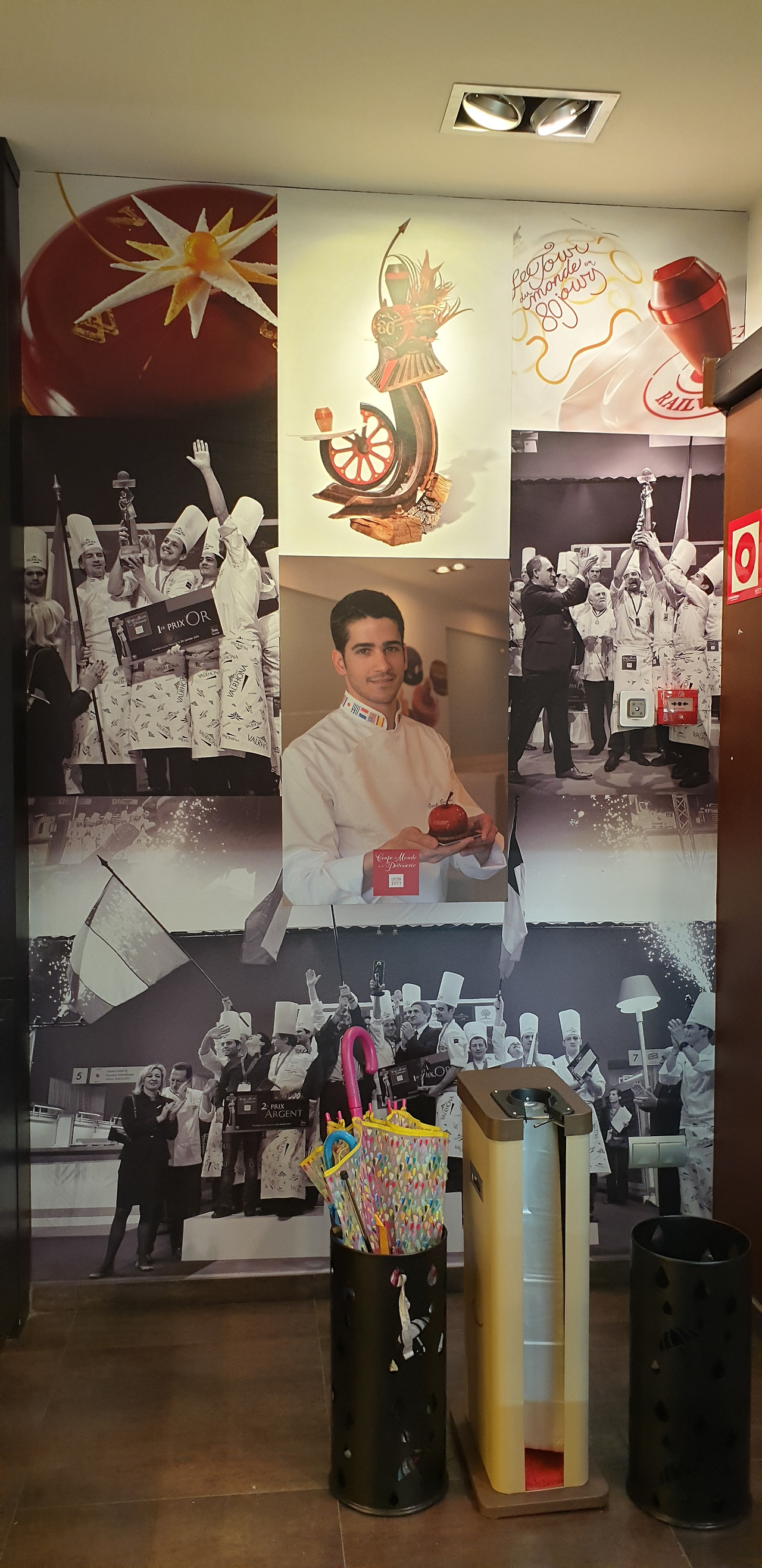 라 파스티 세리아 빵집- 특이한 장미꽃의 빵을 먹는 중에 벽에 있는 사진속에 빵을 개발하고 만드는 사람이 안쪽에서 나왔다.