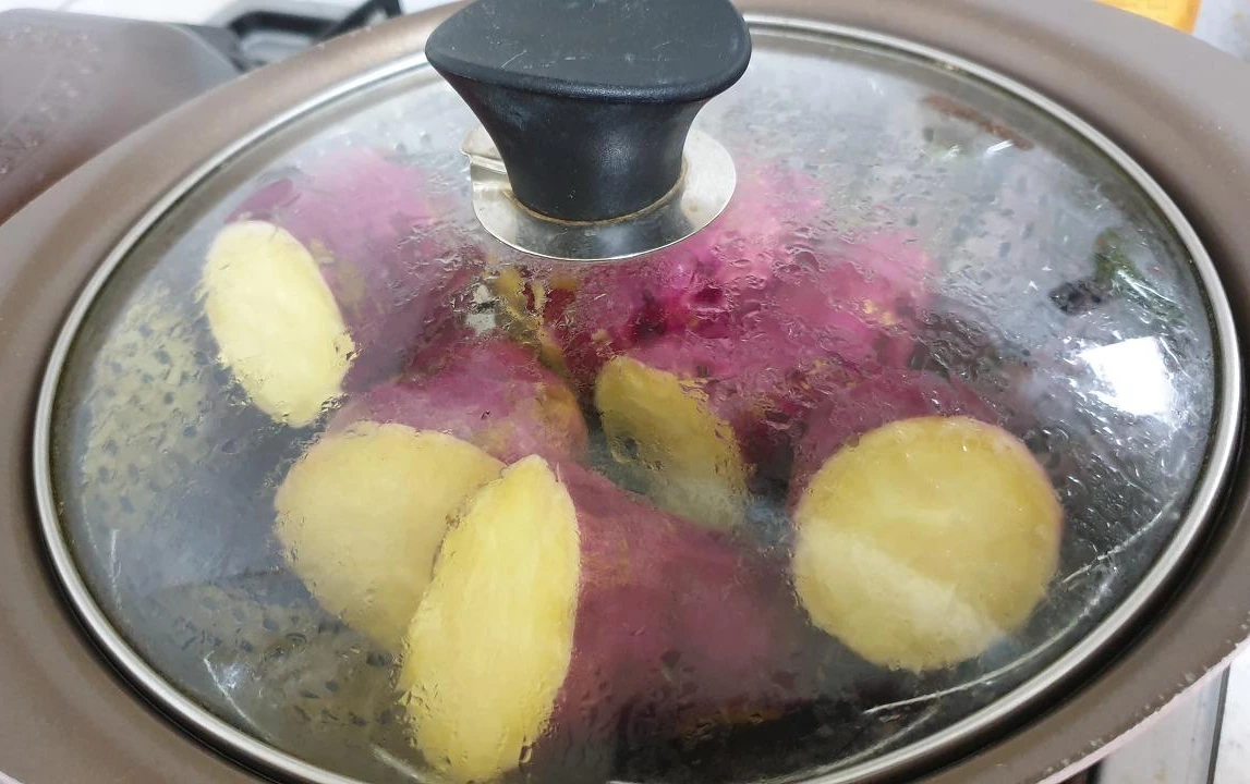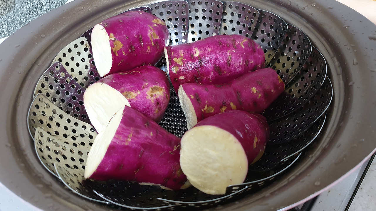 조리법도 확연히 다른 밤 고구마와 호박 고구마를 1kg씩 구매한다. 밤고구마는 쪄서 먹으면 금상첨화지만 호박 고구마는 덜 단단해서 군고구마로 먹으면 적당하다. 물로 씻어서 조리법을 다르게 익힌다. 밤 고구마는 절반씩 잘라서 수증기에 찐다. 조리시간을 가스일 때 중불에서 30분이 적당하다. 조리가 끝났을 때 불을 끄고 바로 뚜껑을 열지 말고 약 5분 정도 뜸을 들인후에 먹으면 더 맛이 좋다.