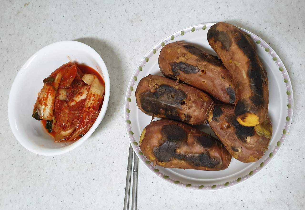 김치와 함께 시식해본다. 노릇노릇 예쁜 고구마전