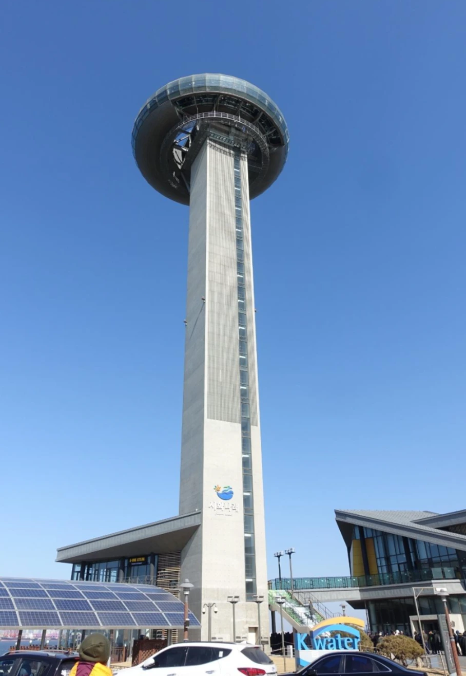 인천 계양으로 돌아가는 길에 왔던 길 대부황금로 도로를 다시 차가 달렸다. 시화 나래 조력 공원 옆의 휴게소를 가려고 주차장 들어가는 길에 높은 전망대도 보였다. 지도에서 찾아보니 달 전망대라고 했다. 그곳에는 선착장은 안보였지만 바다는 예쁘게 보였다.잠깐 보고도 서해바다를 감상했다.