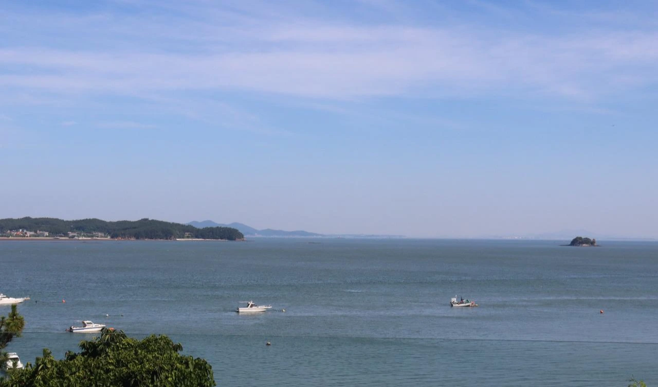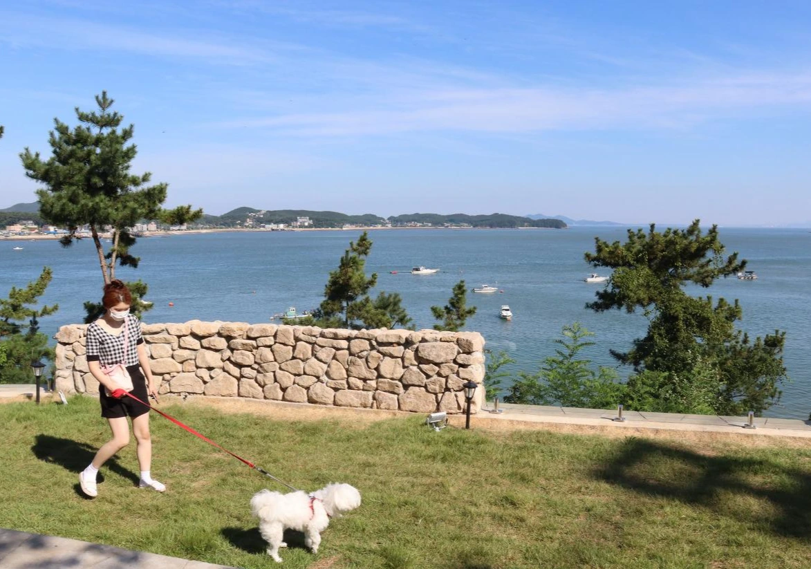 십리포 해수욕장에 도착 후에 방문객 점검을 각자의 전화로 손목밴드로 열체크로 3종류를 하는 걸 봤다.그것들을 통과했지만 뭔지 모르게 기분은 떨어졌다. 그리고 물이 빠져서 갯벌이 보였다. 길이는 아주 긴 해변이었는데 그런데 작열하는 태양을 가리기에는 모자와 양산으로는 역부족이었다. 여름 7,8월의 뜨거운 날씨보다는 비가 오거나 그런 날에 더 좋을 듯했다. 다른 계절도 산책하기에 좋을 듯했다. 멀리 소나무 숲 옆으로 산책로 데크도 보였다.