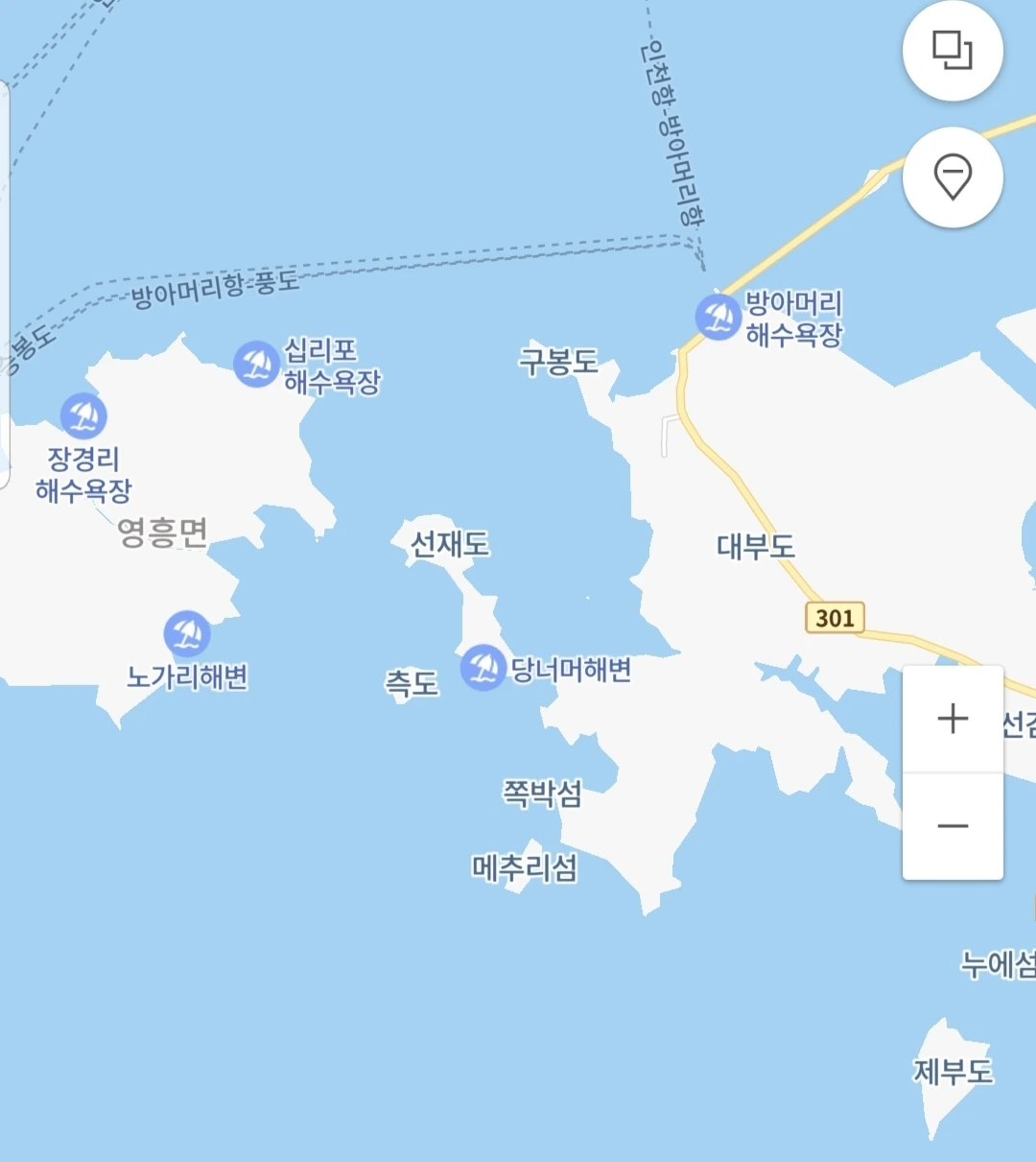 우리와 다른 방향으로 되돌아 나가는 차들은 바닷가 펜션으로 가는 방향인가? 지도를 찾아서 보니 바닷가 쪽으로 펜션이 여러 개가 보였다. 무더위를 식힐 겸 적당한 위치였다. 그리고 영흥도 십리포 해수욕장에서 차로 10 분 거리에 전체 객실에서 바다를 볼 수 있는 쎄시오 리조트가 2년 후쯤에 준공 예정이었다. 그곳을 다음 기회에 와보리라고 마음에 기약했다.