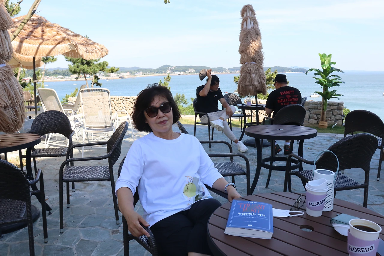 일요일 이른 시간에도 먼저 온 카페의 손님이 있었다. 커피를 주문하고도 마시지도 않은 채 오랜 시간 바다를 감상했다. 눈은 감상하느라 손은 카메라의 셔터를 누르느라고 바빴다. 무더위가 금세라도 날아가는 듯한 기분이었다. 코로나 시대도 끝날 것 같았다. 그렇게 되기를 바라고 또 바랐다.