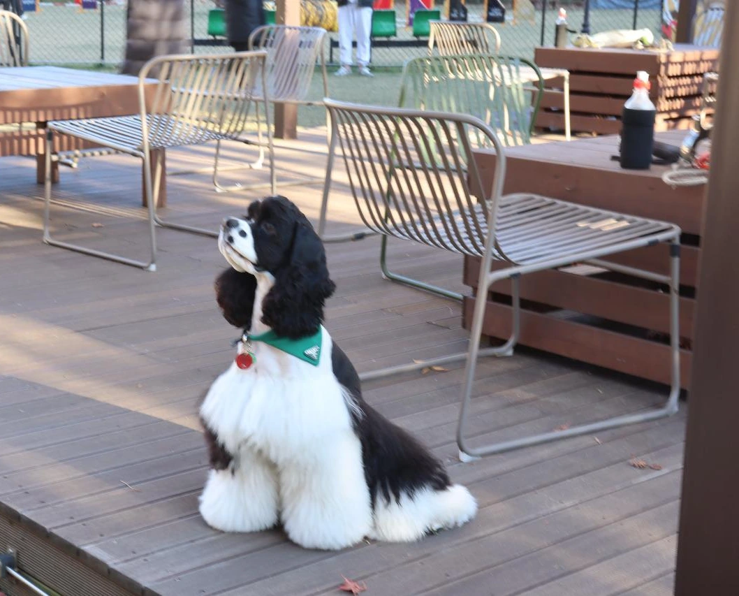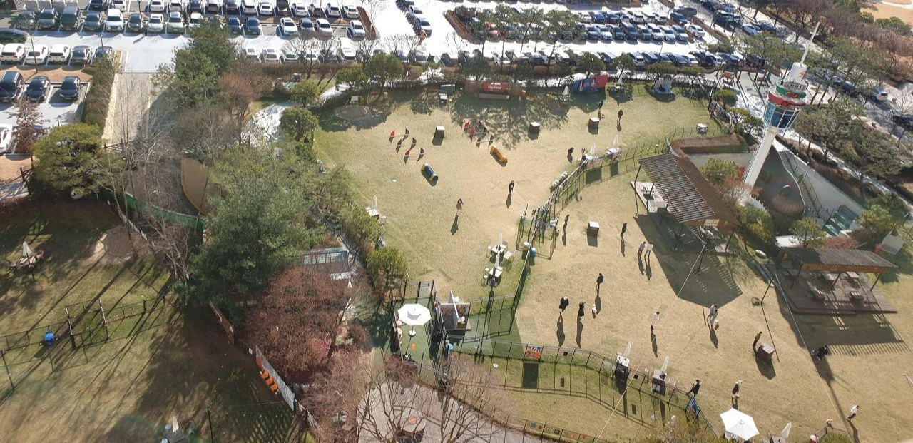 애견놀이터 휴식시간이 끝나고 실버 푸들을 데리고 직접 놀이터에 가서 보았다. 반려견들을 위한 반짝이는 마케팅의 한 종류였다. 안내하는 사람들이 입장을 위한 손목띠를 한 명씩 검사하고 애견도 함께 입장시켰다. 강아지들은 거의 목줄을 풀고 자유롭게 전속력으로 뛰어다니며 풍성하게 놀이터를 모처럼 즐겼다.
