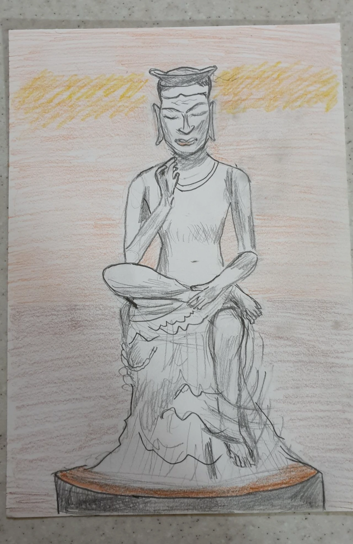 규모에 놀라고 시설에 놀라워하면서 하루에 전부 다 관람할 수는 없었다. 국보 옛 제78호 반가사유상과 또 하나의 반가사유상 국보 옛 제83 호이 있는 곳에서 숙연해짐을 실제 느꼈다. 세계에서 가장 아름다운 두 점의 반가사유상을 위한 전시장 사유의 방에 들어가서 보니 조명이 다른 전시실보다 어두운 듯했다. 두 불상이 전시되어 있는 지지대의 높이는 약 1m였다. 그래서 불상의 시선은 관람객의 눈을 향하게 되어 있었다. 그리고 두 불상의 뒤쪽으로 관람객들이 360도로 돌면서 볼 수 있도록 되어있었다. 전시한 모양을 보면서 조심스럽게 자유롭게 감상했다. 뒷모습도 감상할 수 있었다. 그리고 이외에 다른 장소도 살짝만 관람할 수 있었다. 국립중앙박물관의 실외정원에서 담소도 나누며 미술수업 중에 연필로 스케치한 후에 아쉬움을간직한 채 돌아왔다.