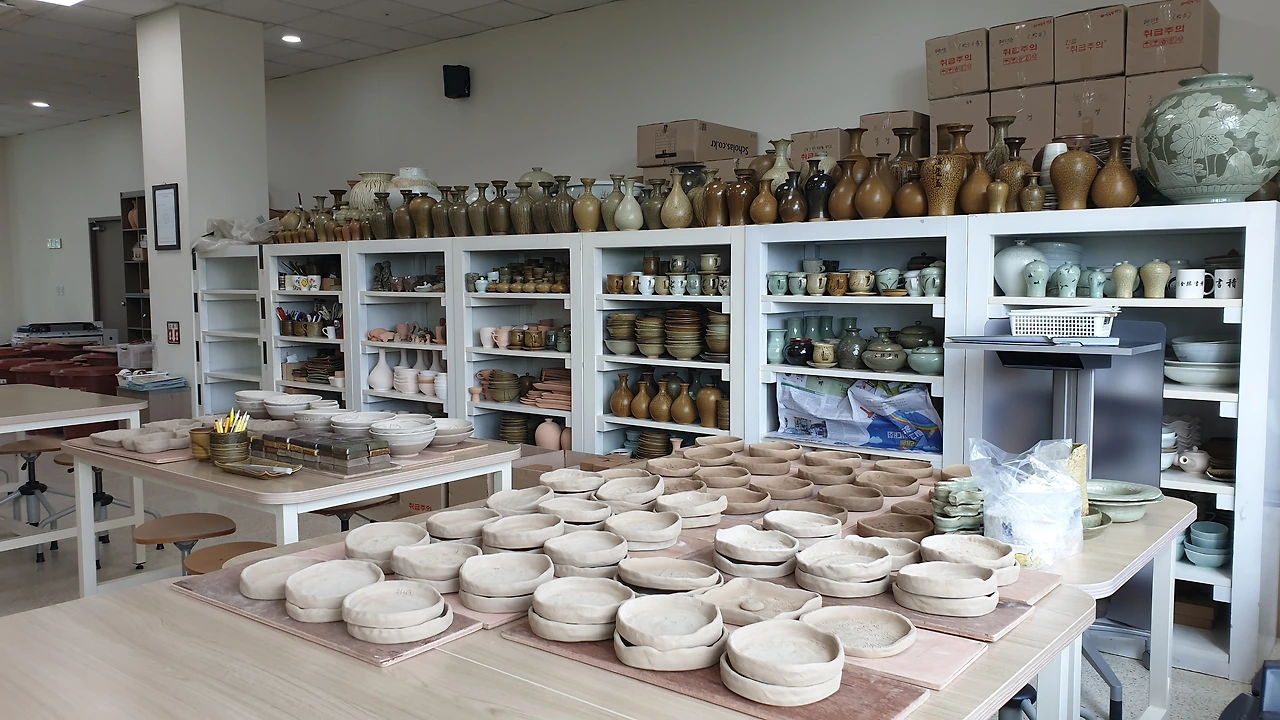 1일 체험을 위해서는 미리 열흘 전쯤에 인터넷으로 날짜와 시간을 예약해야 했다. 주차장도 있는 건물은 1층은 전시실이 있고 2층은 도자기 만들기 체험 공간으로 되어 있었다. 건물 밖의 공간에서 잠시 일행을 기다리면서 보니 외모도 도자기를 만드는 도예가를 연상시키는 분들이 방문을 많이들 하고 있었다.