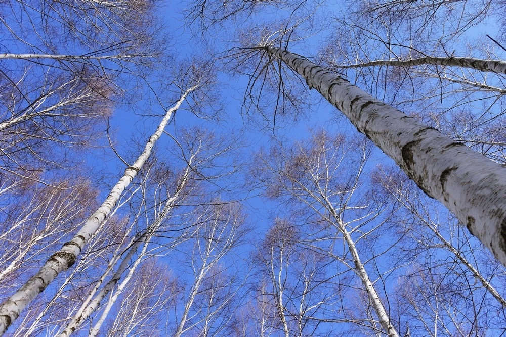하얀 속살을 드러낸 듯한 수많은 자작나무들이 빼곡히 들어찬 숲.