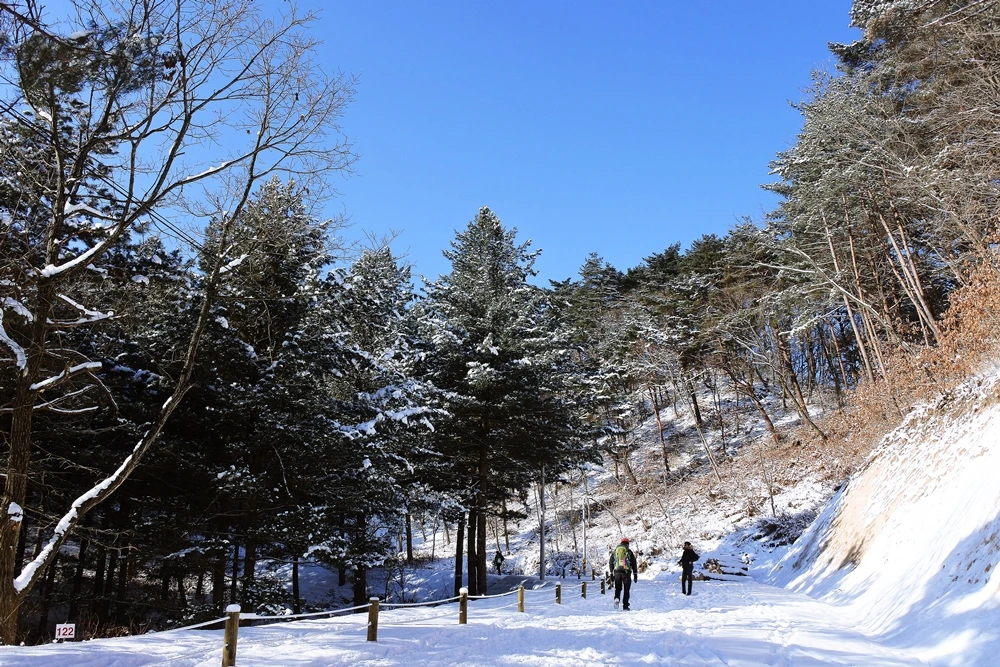 산길에 최적화되어 있지 않아 오르는 발걸음이 더디고 숨이 차오르는 데다, 추운 날씨 탓에 코가 싸! 하고 머리가 쨍! 했지만 걸어가던 그 길에서 만난 풍경은 말 그대로 '눈부신 겨울 풍광' 그 자체였다.