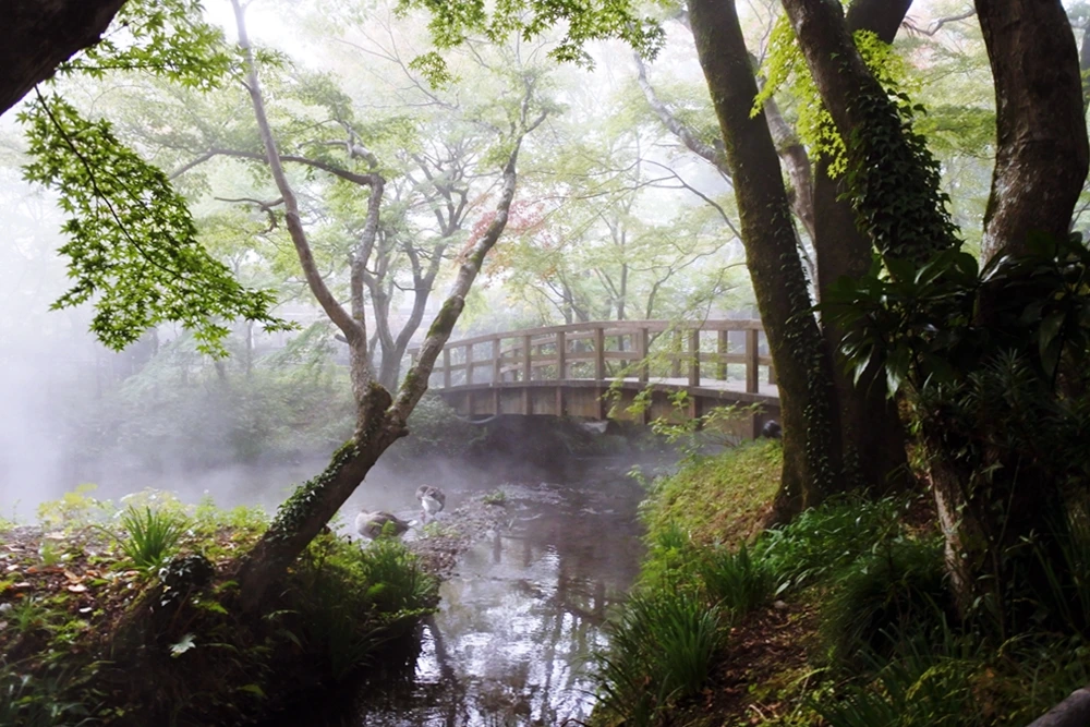 * 긴린코(金鱗湖): 석양에 물고기 비늘이 금색으로 빛나는 모습을 보고 '금비늘의 호수'라 이름 붙임. 호수 아래 온천이 솟기 때문에 늦가을부터 겨울철 호수면에 안개가 피어오름