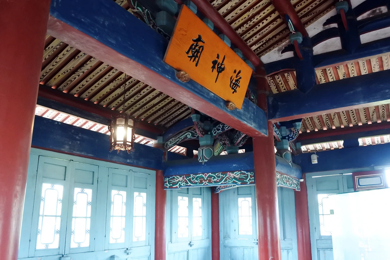 유교 사원인 문창각(文昌閣)은 학문/교육을 주관하는 신을, 도교 사당인 해신묘(海神廟)는 바다의 신인 사해용왕(四海龍王)을 모시는 곳.