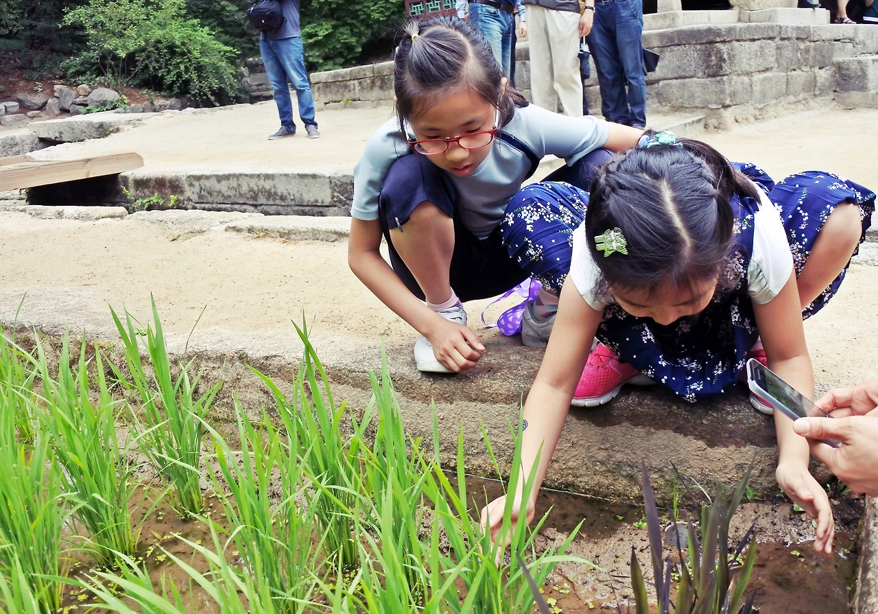 따님들이 올챙이를 잡아보겠다고 애쓰는 사이,