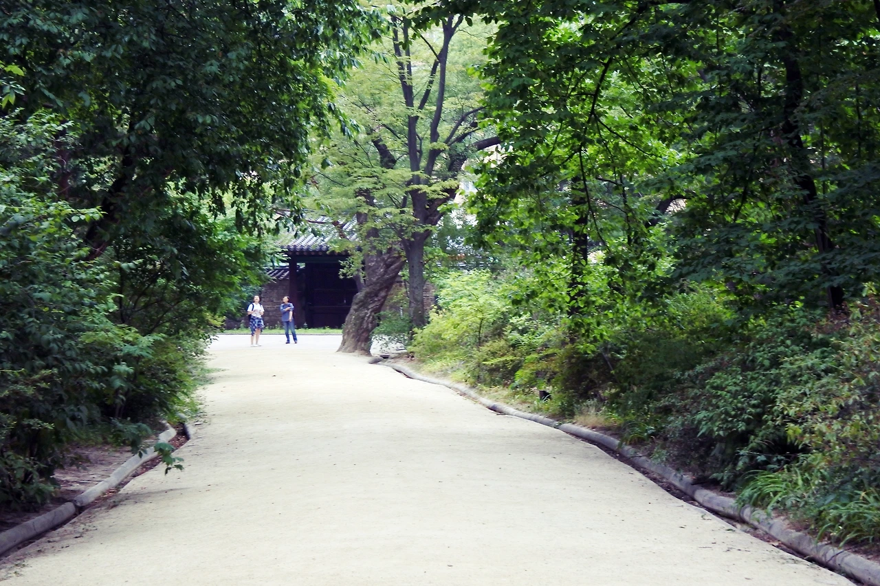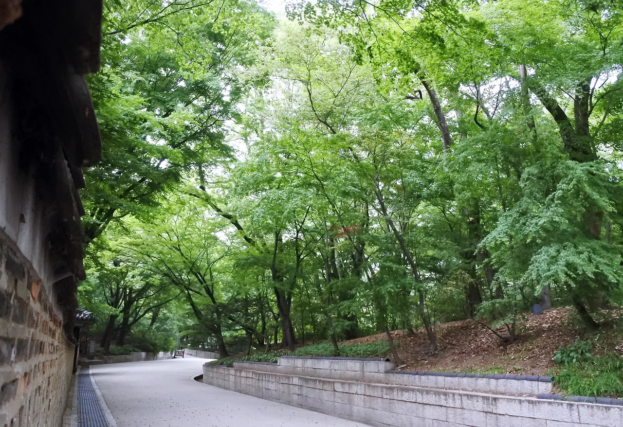 후원(또는 비원) 초입에 서니, 언덕 위에서 살랑살랑 불어오는 바람.