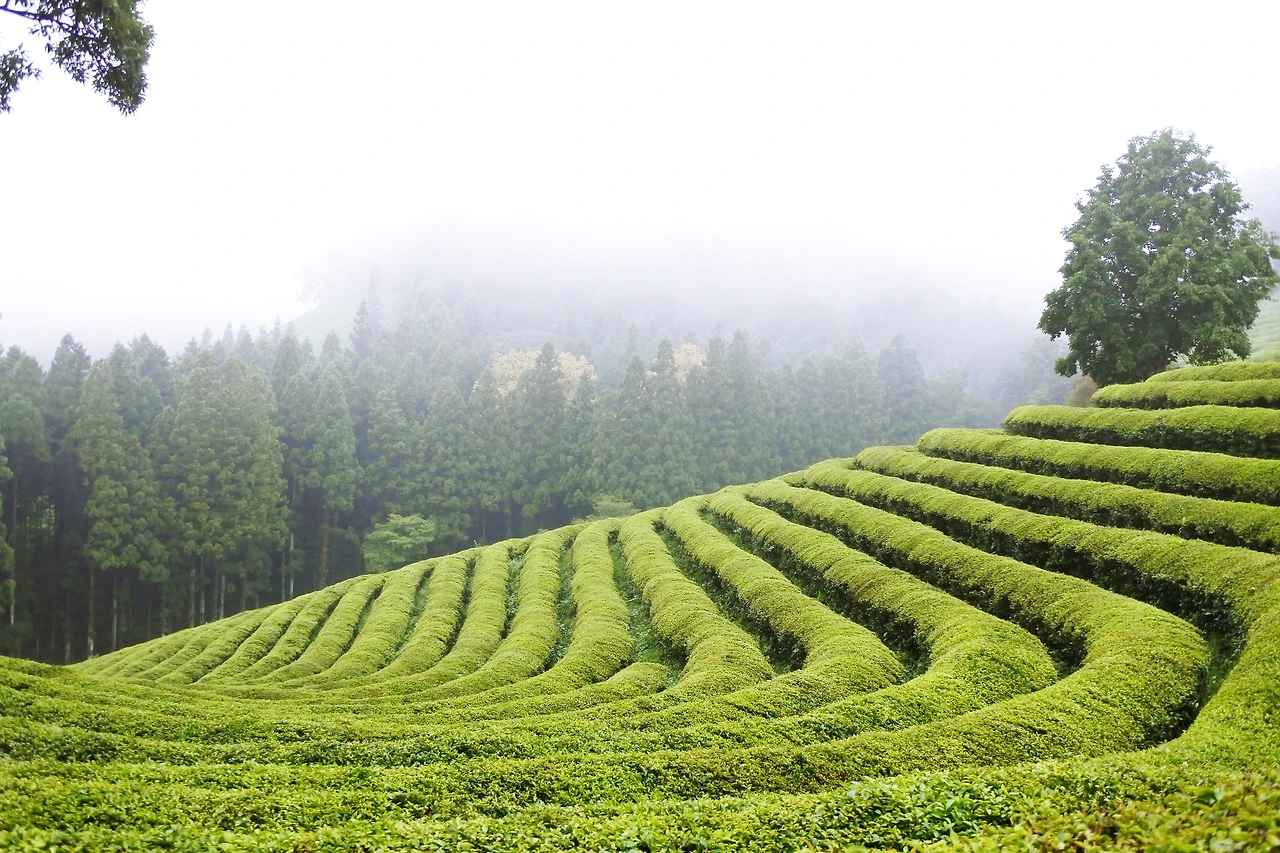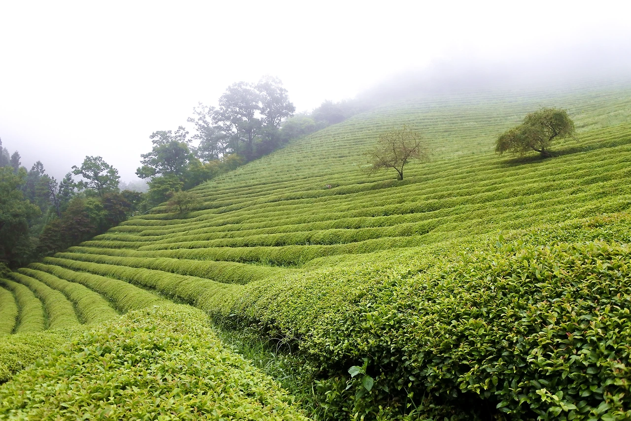 시원하게 펼쳐진 초록빛 차밭,