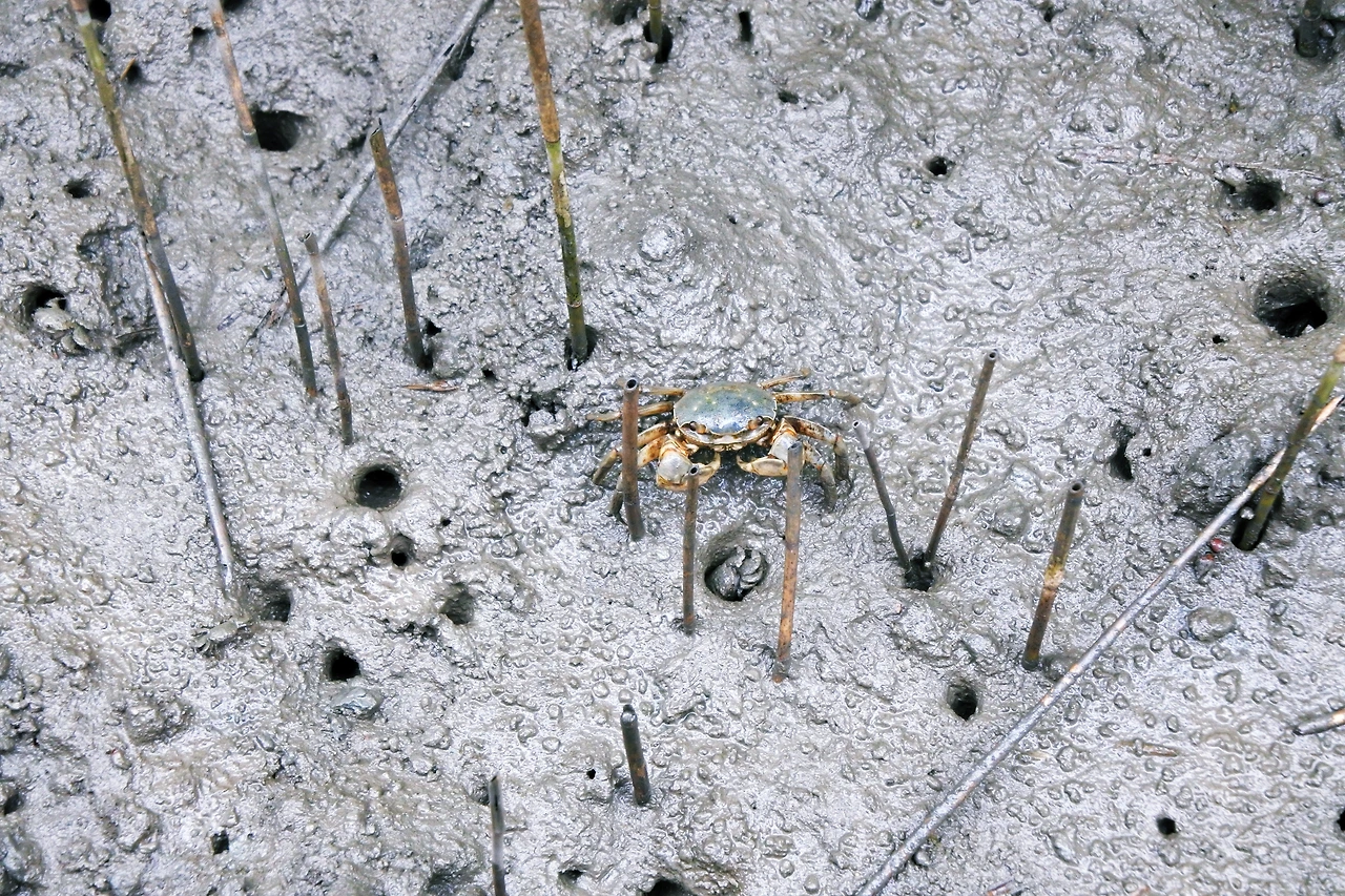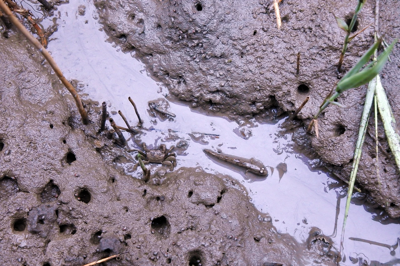 습지를 가로지르는 데크를 걸어가며 만난 짱둥어와 온갖 종류의 게들.