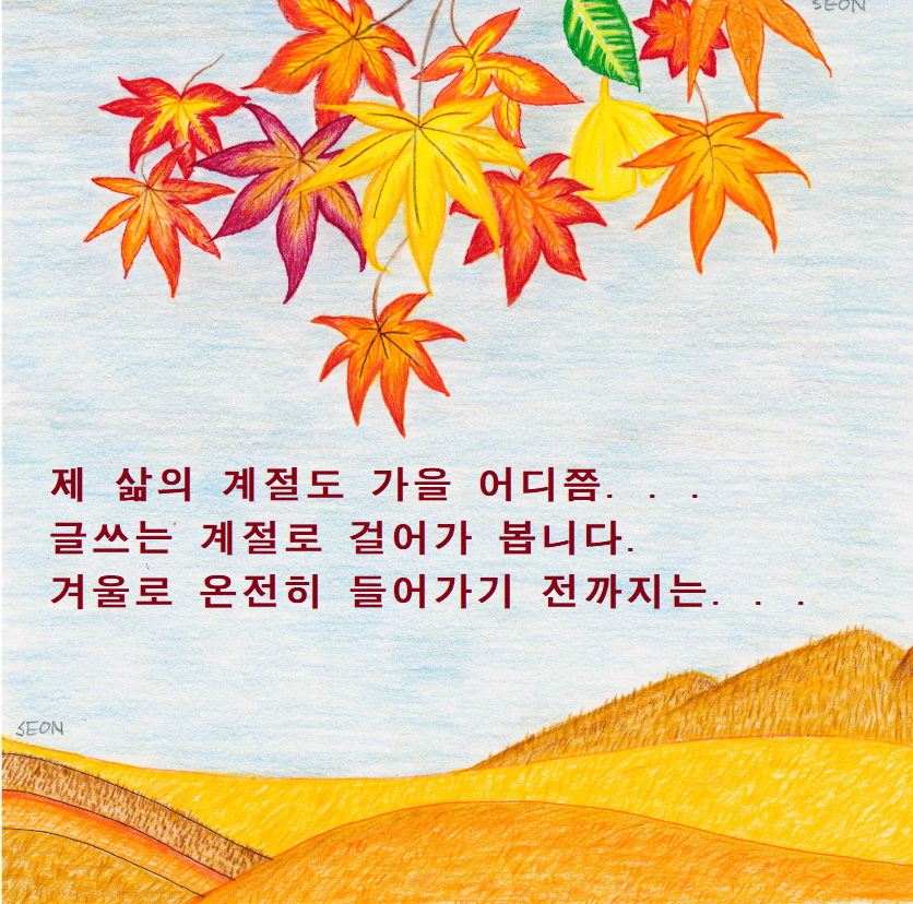 분주하게 살아온 시간이 잡힌 것도 없이 가버렸다. 지금 내 삶의 계절은 지금과 같은 11월에 접어든 어느 가을날 정도일까. 꿈으로 피어났던 봄, 지독히도 치열했던 뜨거운 여름, 흩어진 열정의 어수선함을 차분히 가라앉힌 가을도 빠르게 지나가고 있다. 분주함으로 달리던 내 앞에 커다랗게 ‘잠깐 정지’ 팻말이 보인다. 네 달리는 목적지가 어딘지 아느냐고 비웃듯이 묻는 큰 글씨이다. 흠칫 멈춰서 올려다보니 내 삶의 겨울이 그리 멀지는 않았음을 주지 시킨다.