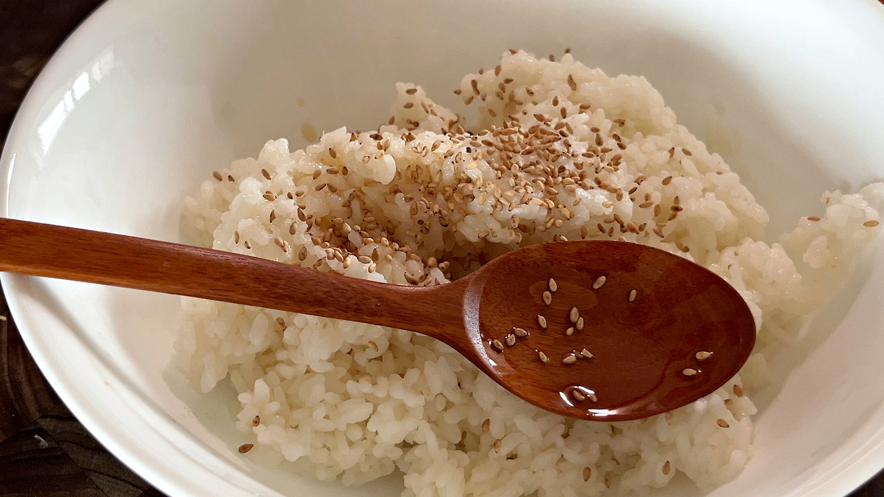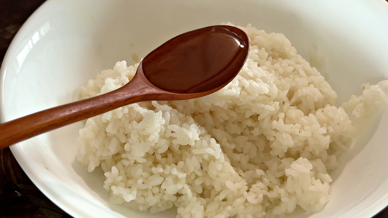 4. 보울에 밥과 소금 1/2작은술, 참기름 1큰술을 넣어 섞어준다.