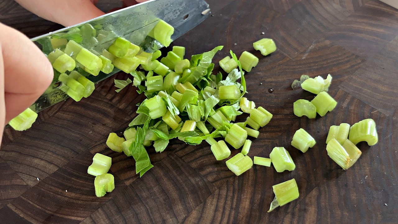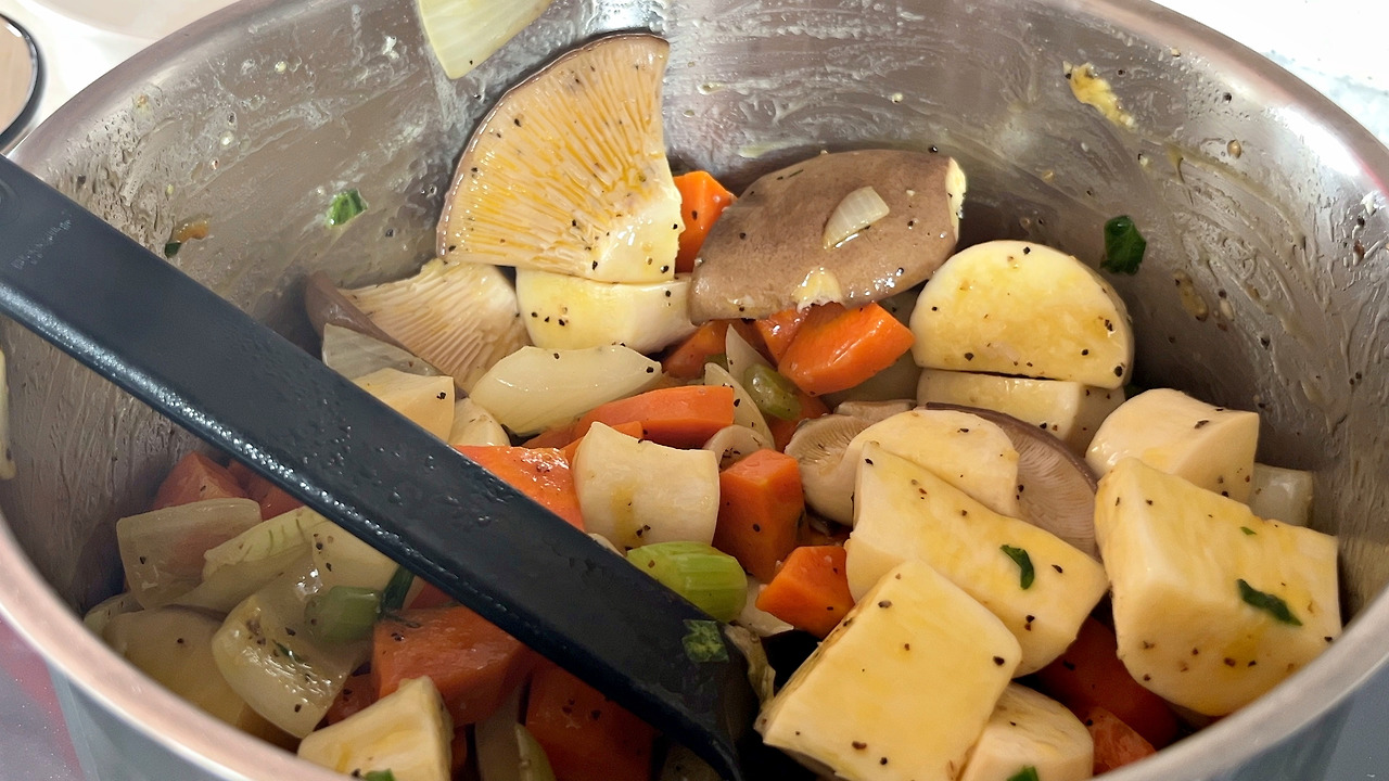 1. 버섯, 셀러리, 양파, 당근을 한입 크기로 썰어준다.