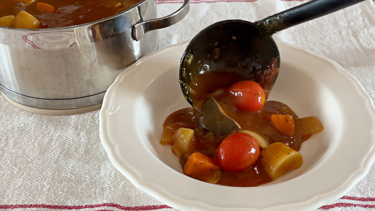 난 토마토 카레에 일부러 육류를 넣지 않았다. 카레에 채소만 넣어 만드는 것을 좋아하는 지극히 개인적인 취향 때문이었다. 그러니 고기를 넣고 싶다면 걱정 말고 추가해도 좋다. 돼지고기, 소고기, 닭고기 모두 잘 어울리니 취향껏 골라 넣자.