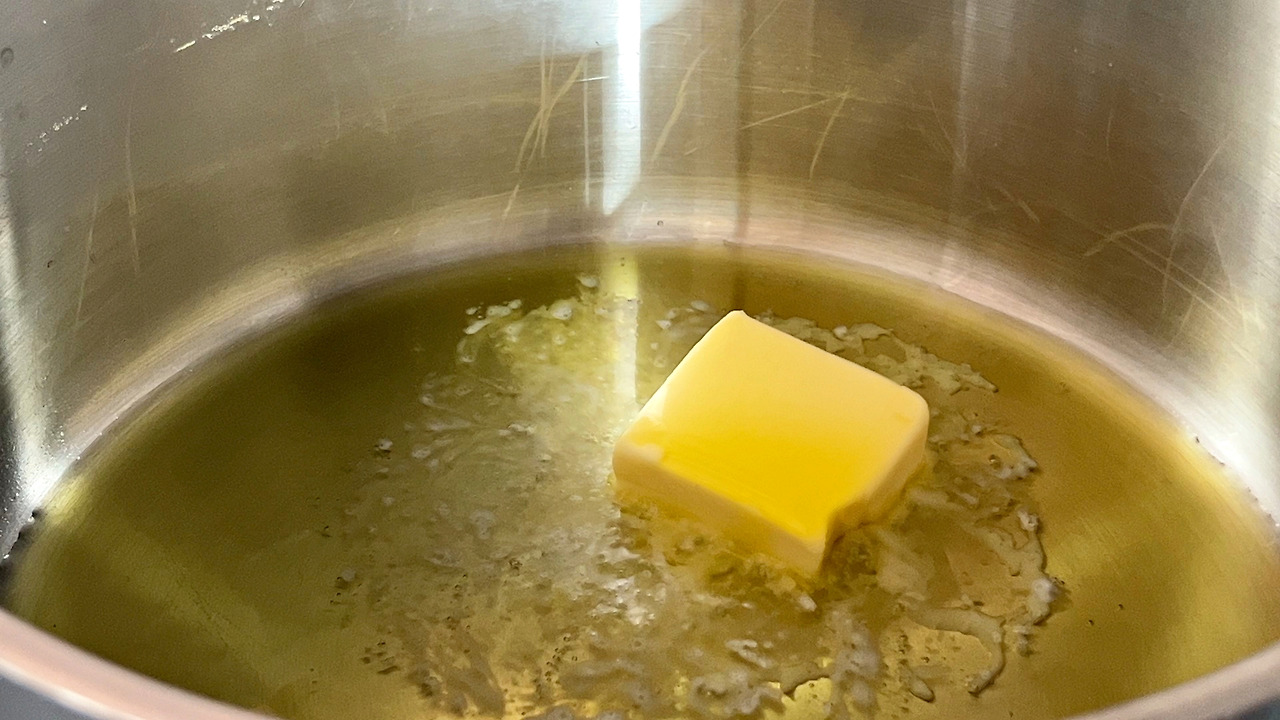 2. 달군 냄비에 버터와 올리브 오일을 두르고 방울토마토와 버섯을 뺀 모든 채소와 소금, 후추를 넣어 볶아준다.