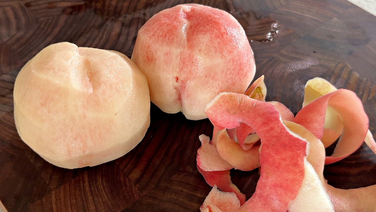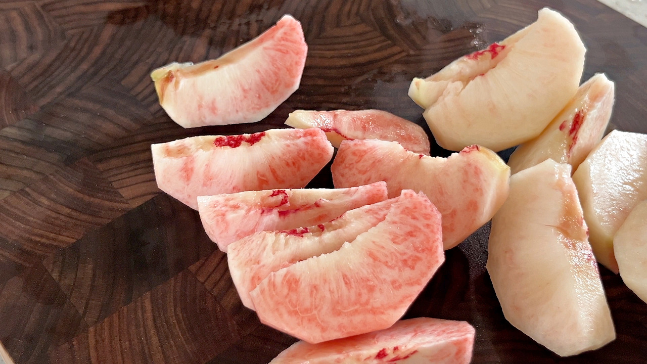 1. 복숭아 껍질을 깎아 먹기 좋은 크기로 잘라준다.