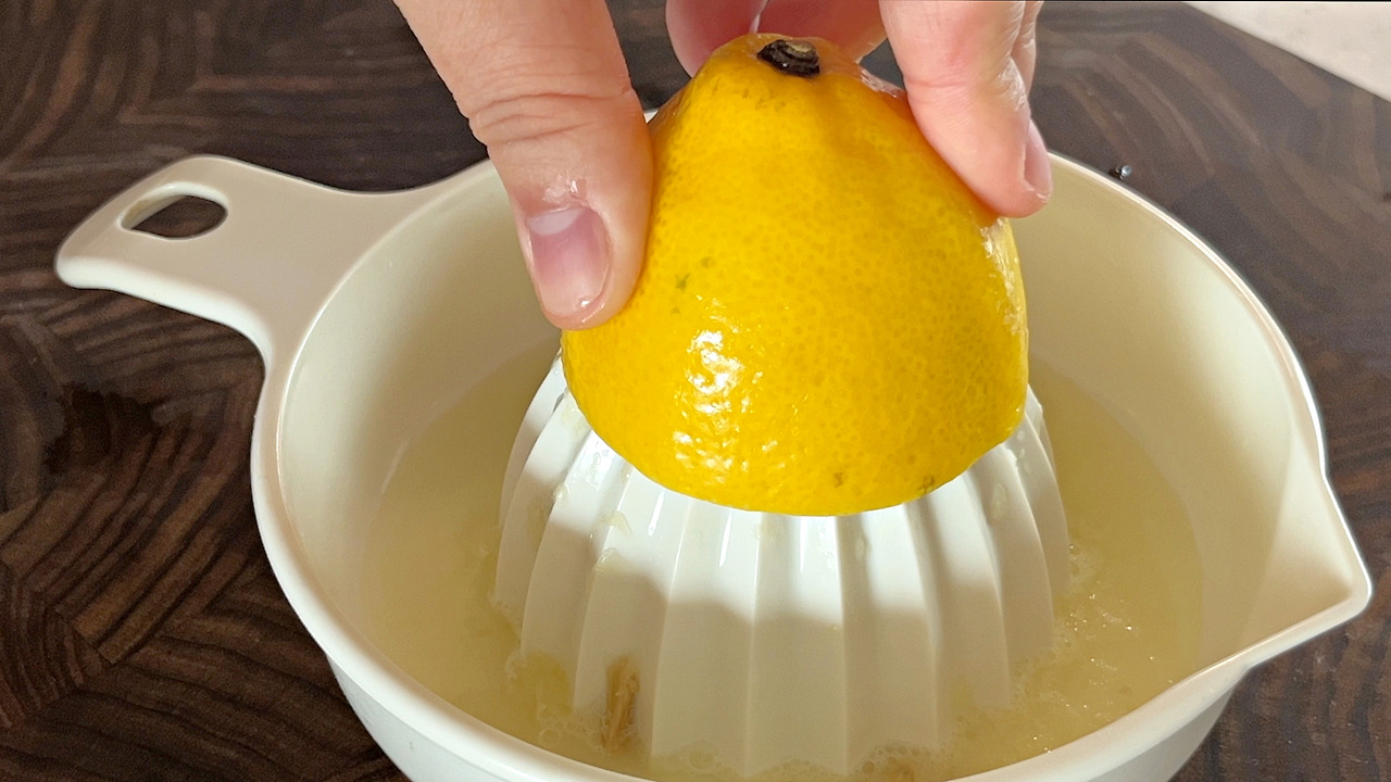 1. 레몬은 굵은소금으로 껍질을 문질러 닦아주고, 스퀴저를 이용해 레몬즙을 만들어준다.