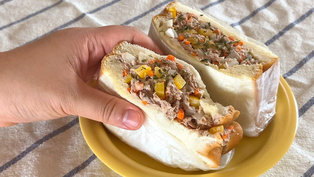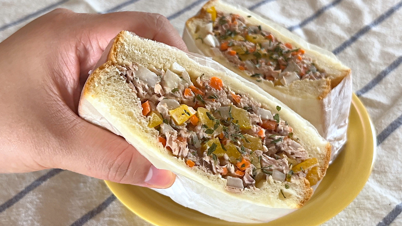 참치 샌드위치에 들어가는 채소는 비교적 향이 강한 것들로 선택했다. 참치 특유의 비릿함을 가리고 싶었기 때문이다. 하지만 향이 강한 채소들 중에서도 오이는 넣지 않는 것을 추천한다. 참치와 오이가 만나면 비린 맛이 최소 2배는 더 강해지니 오이를 아예 넣지 않거나 소금을 뿌려 절인 후 물기를 뺀 오이를 사용하자.