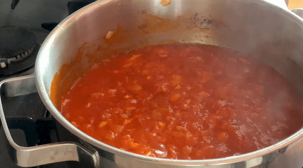 이미 애호박과 가지를 살짝 익혀주었기 때문에 오래 끓여줄 필요는 없다. 애호박과 가지를 봤을 때 토마토소스가 살며시 배어들어간 것이 보인다면 바로 불을 꺼주자. 조금만 더, 조금만 더 욕심을 부리다간 토마토소스가 냄비 바닥에 까맣게 붙어버린 모습을 보게 될 것이다.