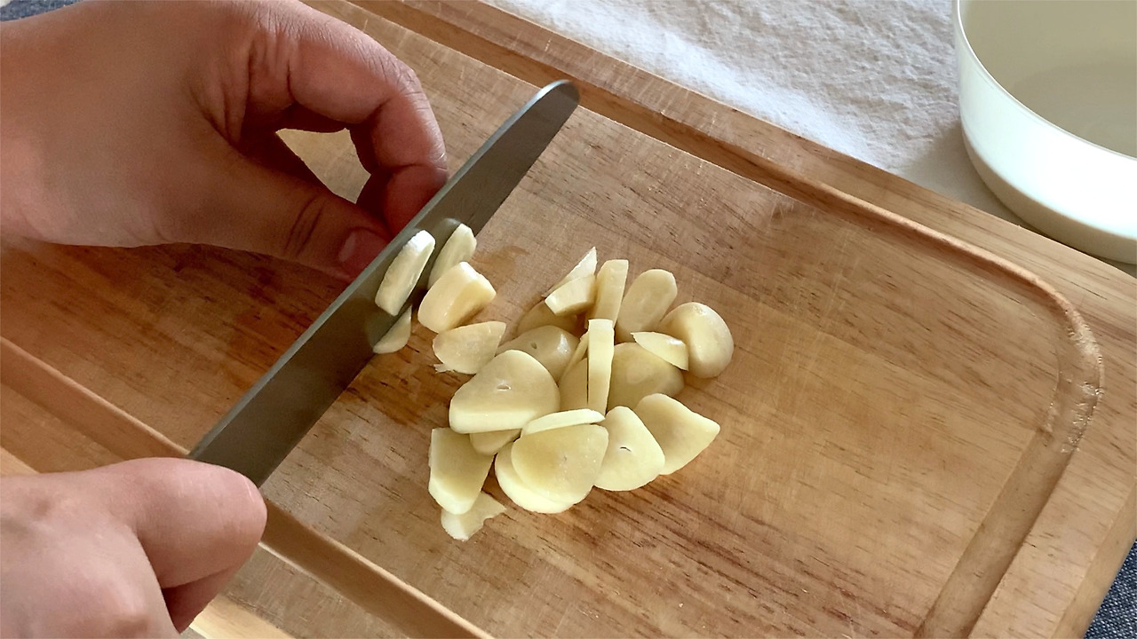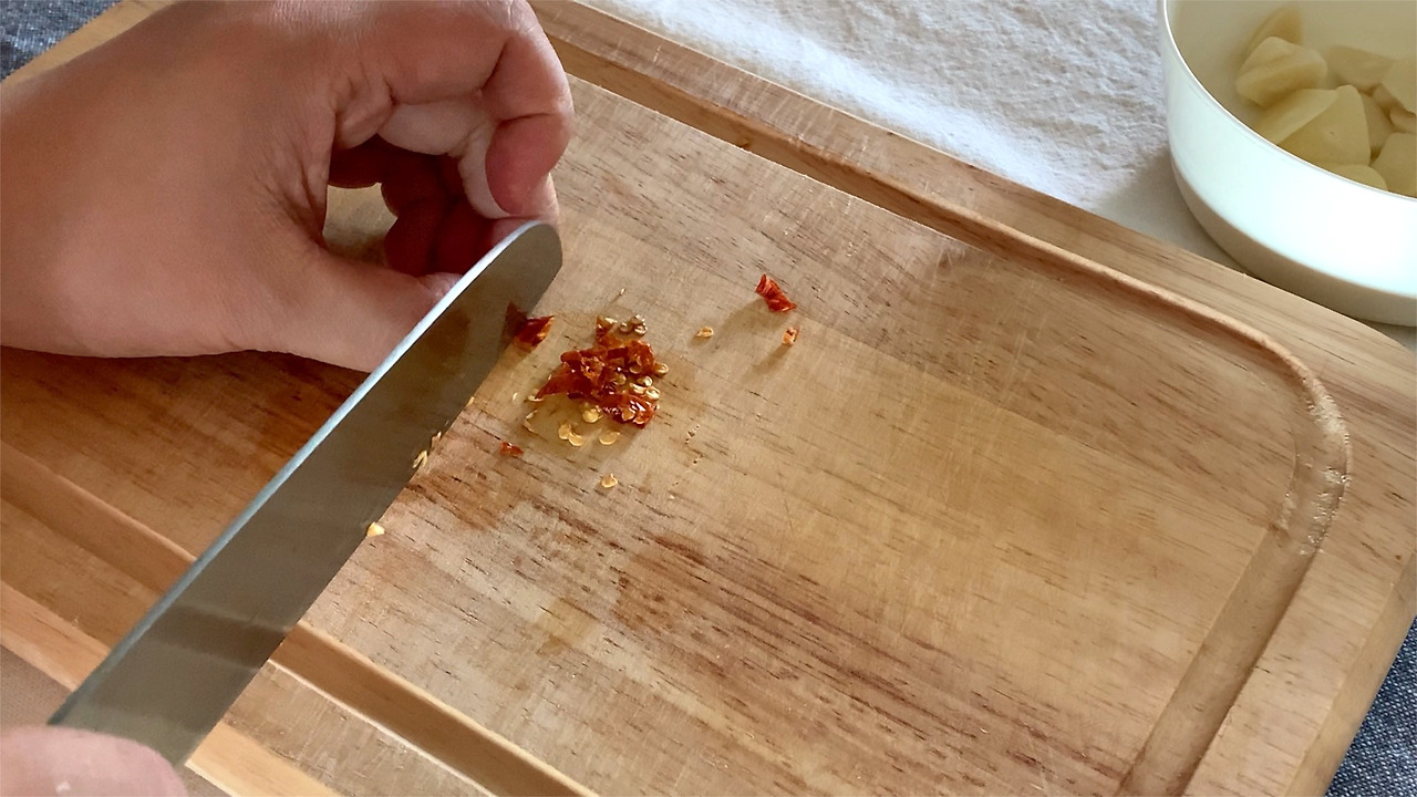 1. 마늘은 편 썰고 페퍼론치노는 잘게 다져준다.