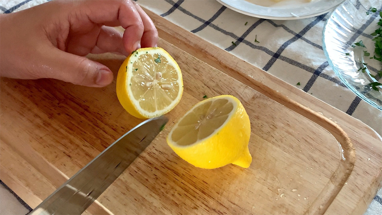 레몬즙은 꼭 불을 끄고 넣어주는것이 좋다. 레몬즙에 열이 가해지면 맛이 변할뿐더러 상큼한 향이 많이 줄어들게된다. 열이 없는 상태에서 레몬즙을 넣어 상큼함을 최대로 올려주자. 이 파스타에서 파슬리도 매우 중요한 재료이지만 레몬의 맛 또한 잘 살려줘야 이 요리가 빛이난다.
