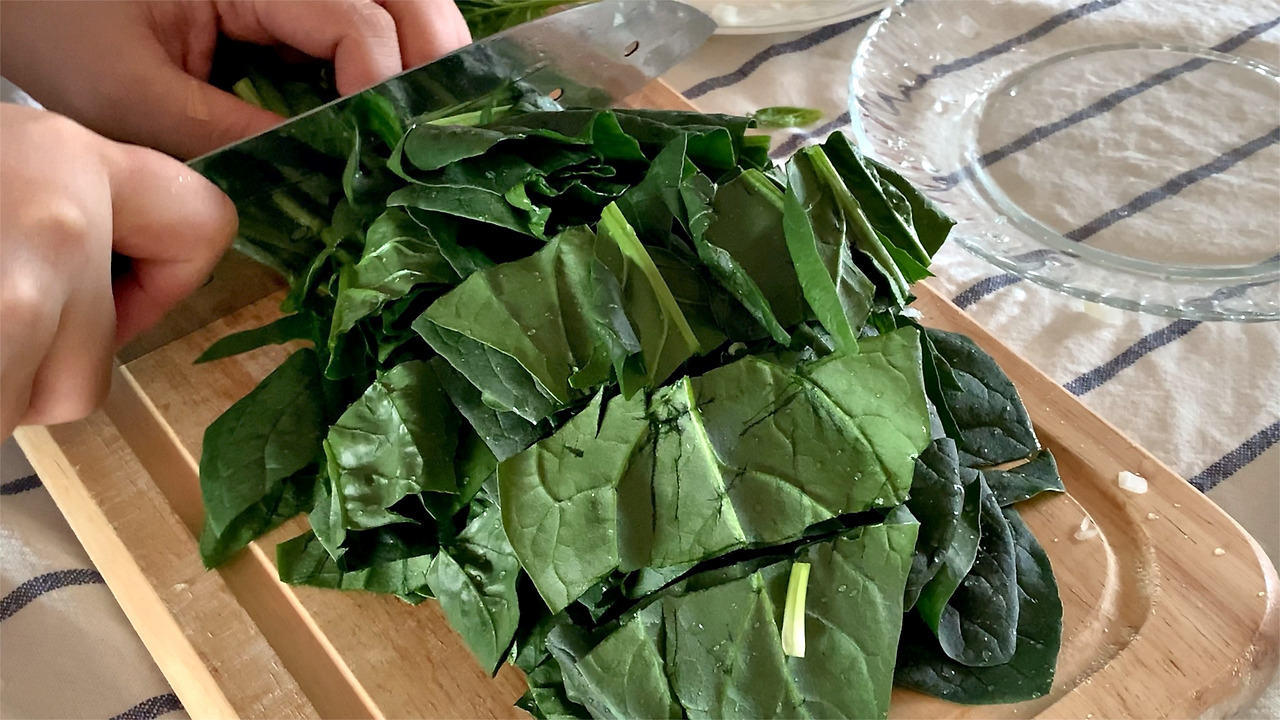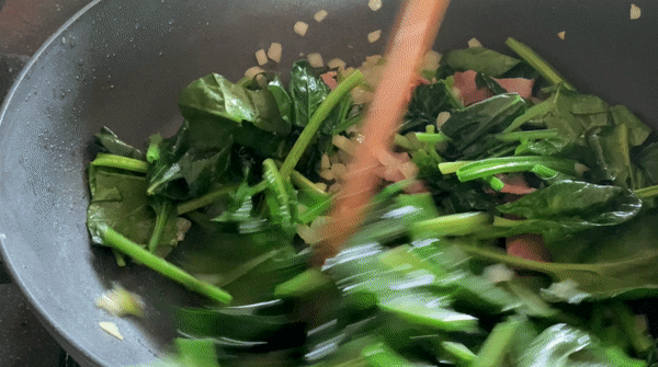 베이컨을 많이 넣는다면 올리브 오일을 생략해도 좋다. 하지만 나는 비교적 적은 양의 베이컨만 사용했기 때문에 올리브 오일을 소량 같이 넣어주었다. 그리고 이 과정에서 시금치는 살짝만 볶고 넘어가자. 다음 단계에서 계란 베이스와 함께 충분히 익혀줄 거니까.