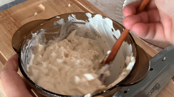 2. 정해진 분량의 마요네즈, 다진 양파, 고추냉이, 레몬즙, 설탕, 후추를 넣어 섞어준다.