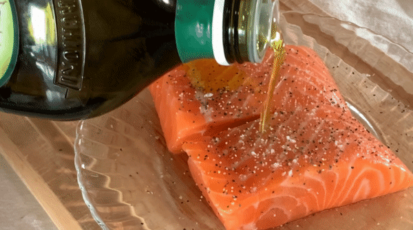 3. 연어에 소금과 후추, 올리브 오일(1큰술)을 뿌려 밑간을 해준다.