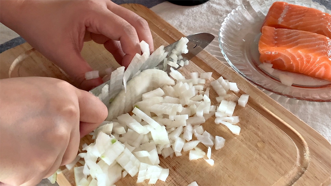 1. 소스에 넣을 양파를 굵게 다져준다.