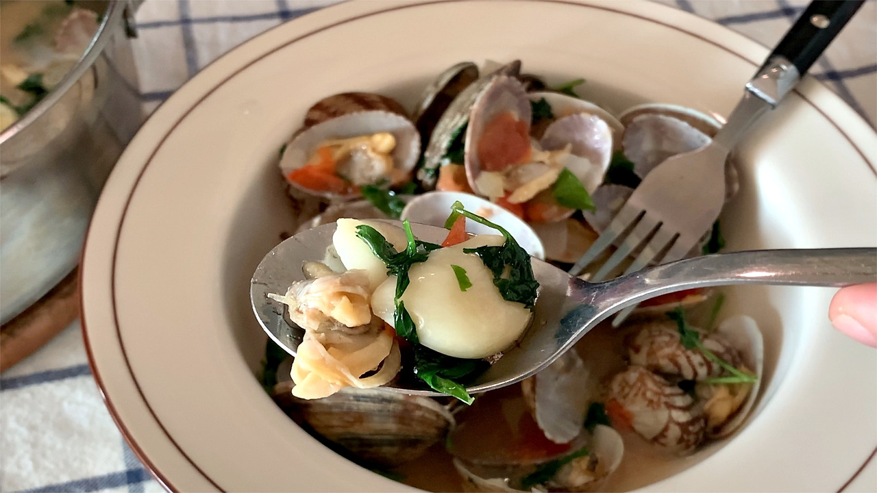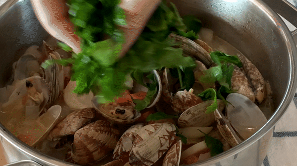 토마토와 파슬리는 그리 오래 익히지 않아도 된다. 그러니 바지락이 모두 익었을 때 토마토를 넣은 후 바로 불을 꺼도 좋다. 그리고 향이 중요한 파슬리는 불을 끈 상태로 넣어주자. 파슬리가 열을 만나면 특유의 매력적인 그 향을 잃어버릴 수도 있다.