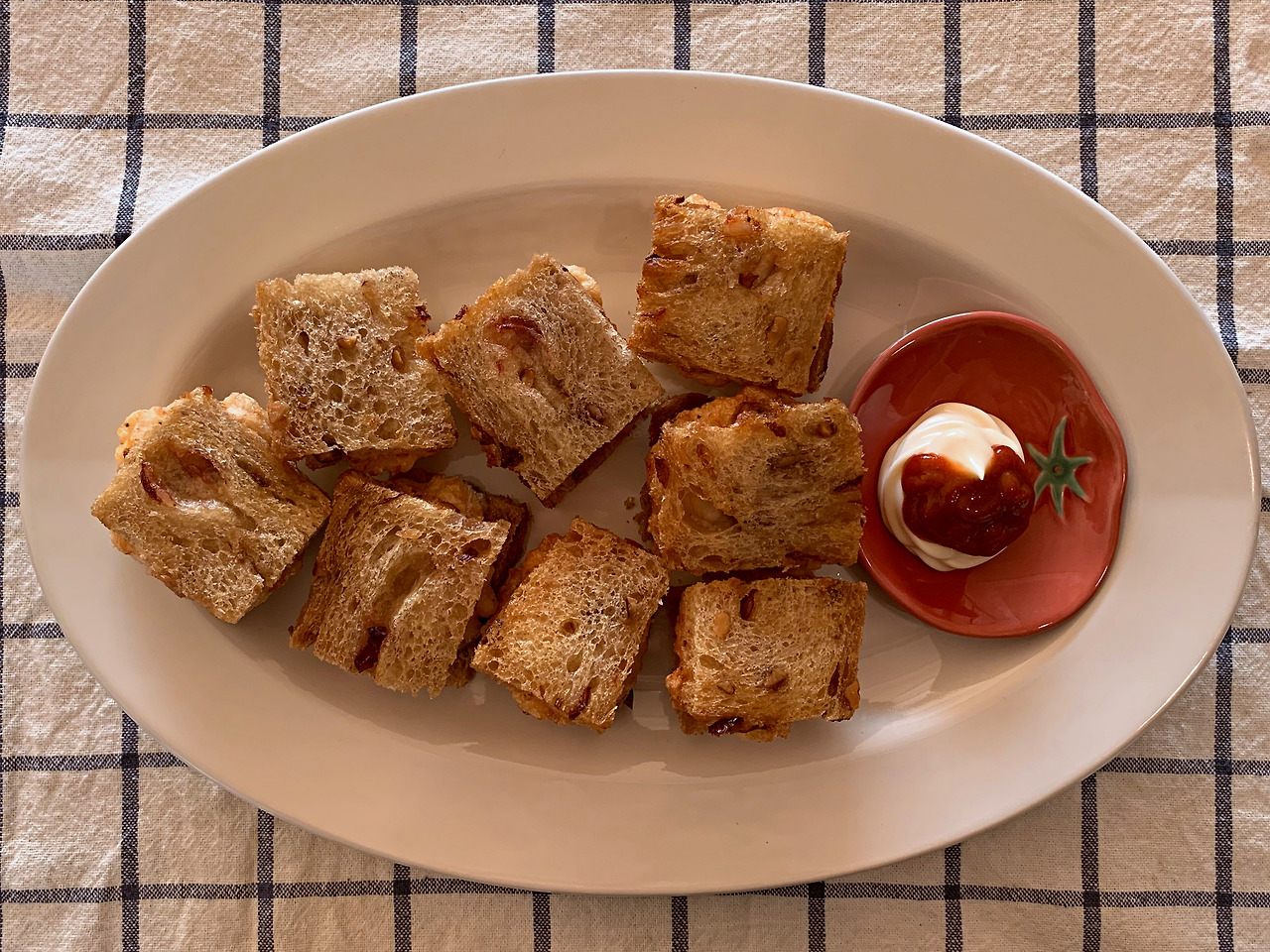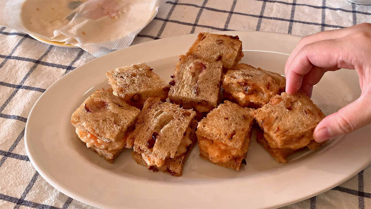 : 새우랑 식빵을 한 번에 익히기가 이렇게 힘들었나.