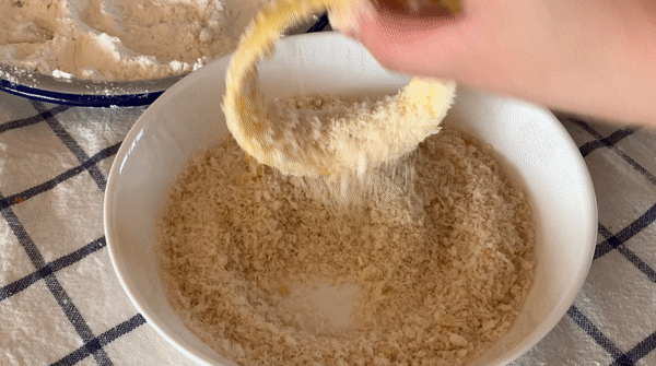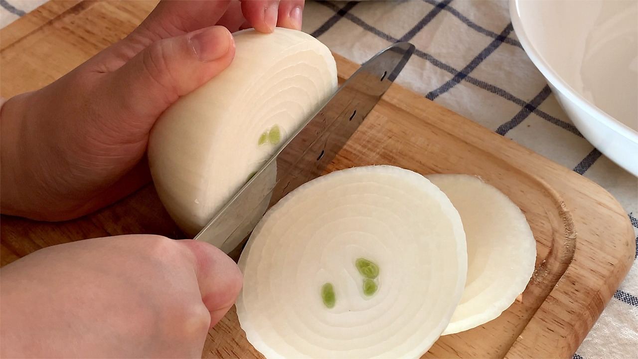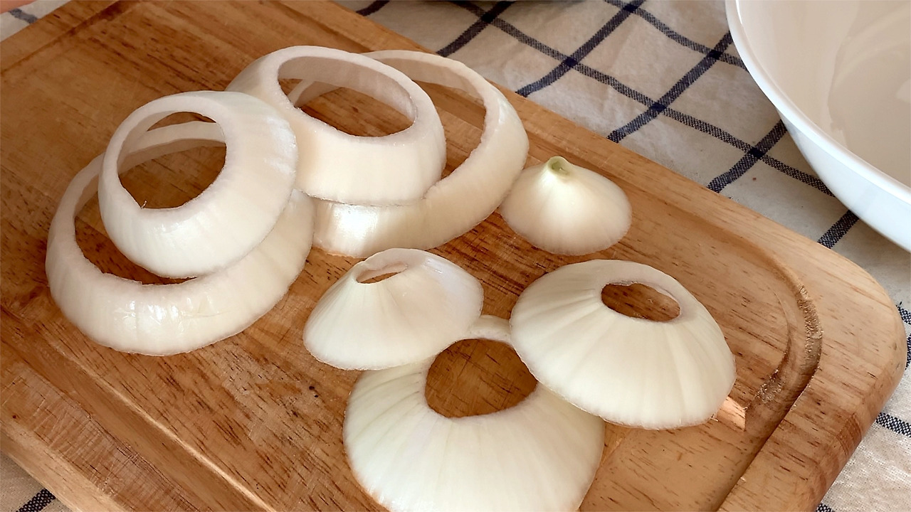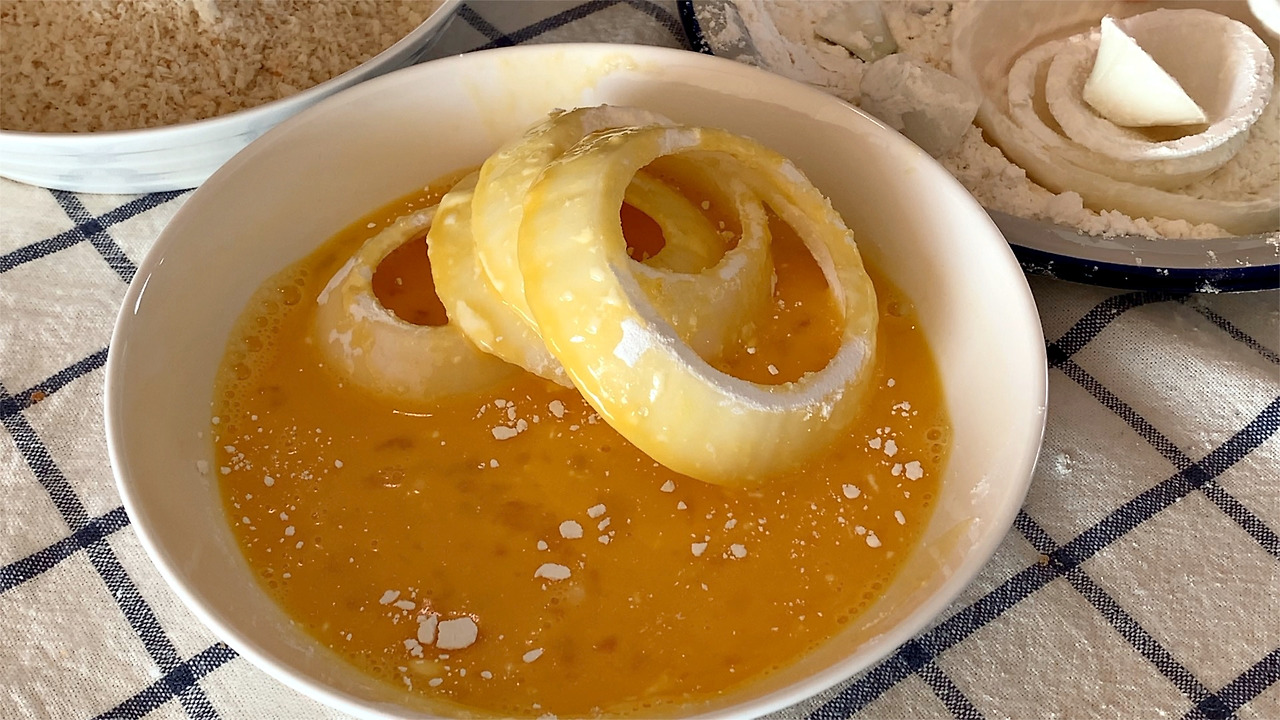 2. 감자는 소금으로 밑간을 하고, 양파는 밀가루-달걀-빵가루 순서대로 튀김옷을 입혀준다.