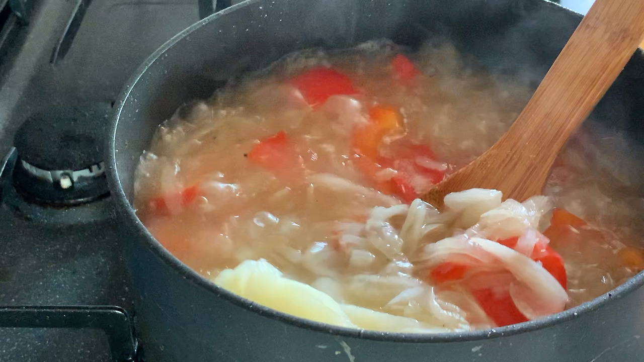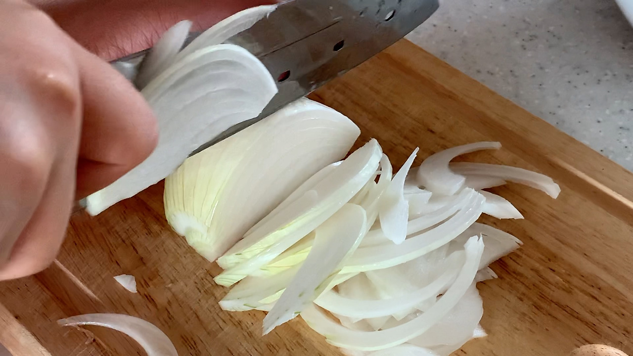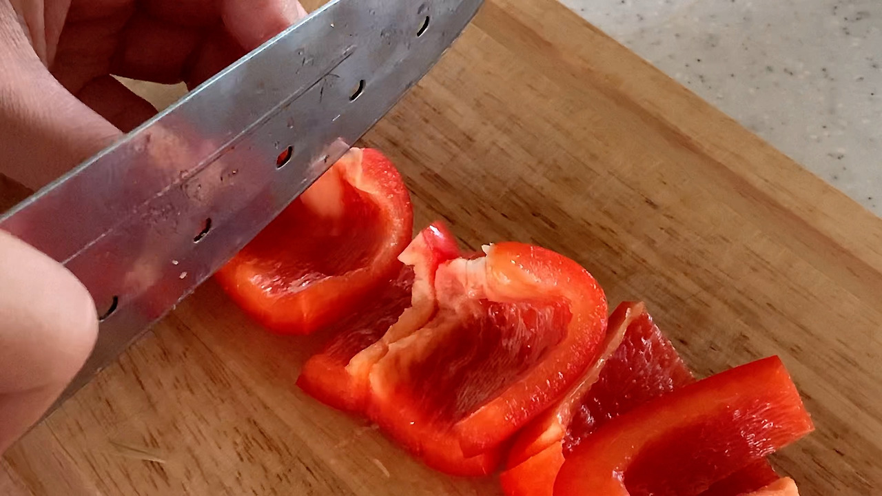 양파는 볶아서 수분을 날려줄 것이기 때문에 최대한 얇게 썰어주는 게 좋다. 두툼하게 썬다면 수분을 날리는 데에 하루를 꼬박 써야 할 수도 있다. 그리고 파프리카 또한 깍둑썰기보다 좀 얇게 써는 것을 추천한다. 파프리카는 생각보다 잘 물러지지 않기 때문에 부드러운 파프리카를 먹고 싶다면 조금 얇게 썰자.