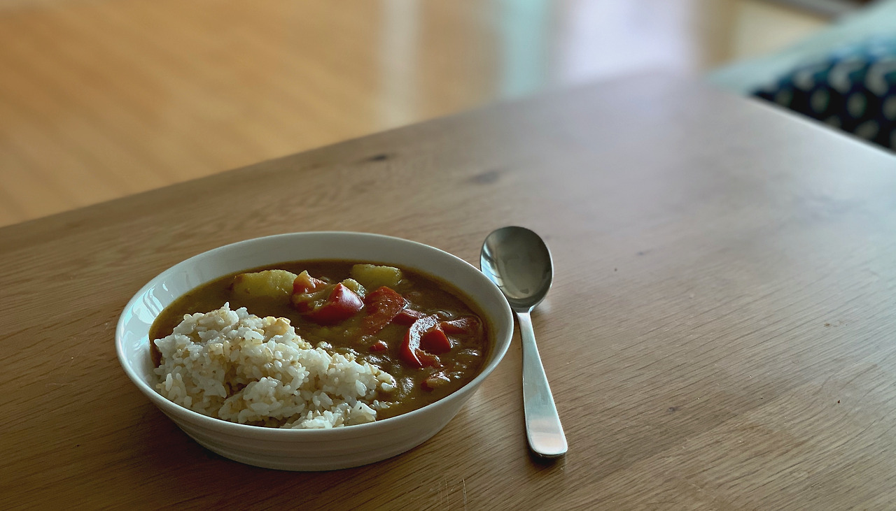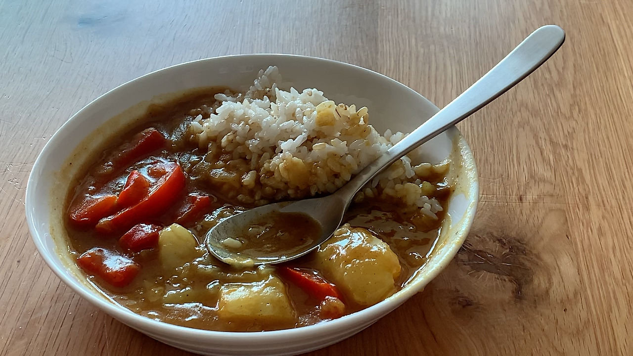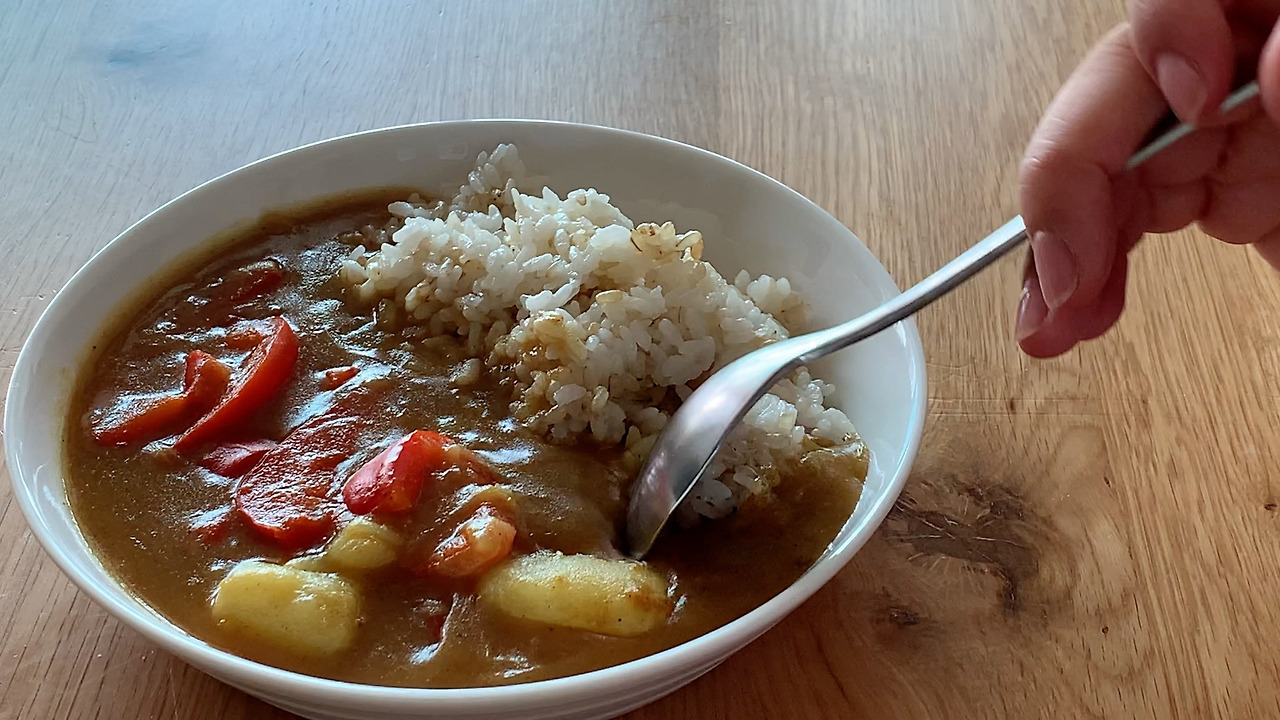 개인적으로 카레는 묽은 것을 더 선호한다. 국 처럼 말아먹는 느낌이 좋아서. 하지만 카레를 아예 밥 위에 부어서 먹는 것은 그리 좋아하지 않는다. 밥 따로, 카레 따로 떠서 먹는 것이 좋다. 그렇기 때문에 밥을 한 쪽으로 몰아놓고 나머지 공간에 카레를 부어넣는다. 만약 비벼먹는게 귀찮다면 밥 위에 부어서 먹는 것이 좋겠다.